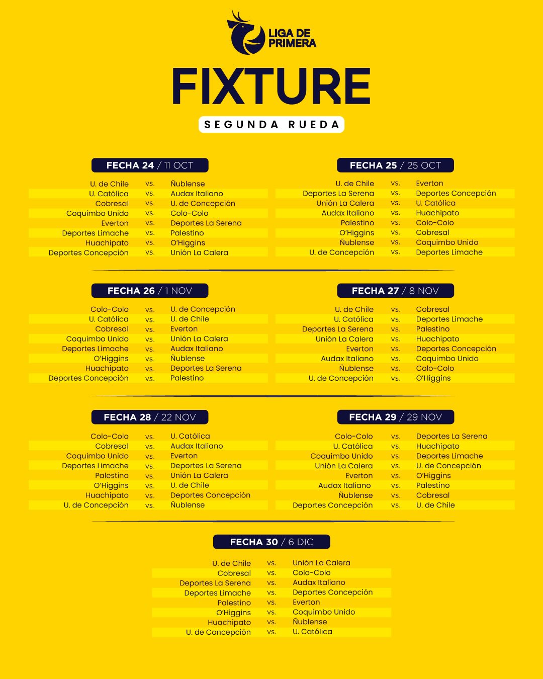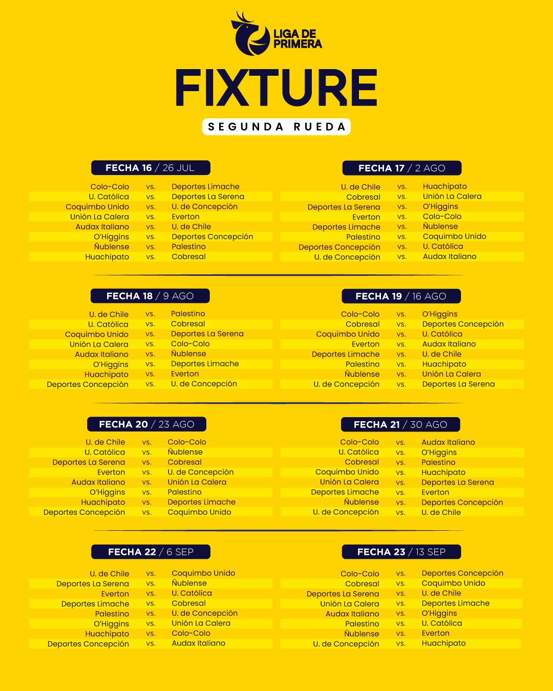 El actual campeón, Coquimbo Unido, buscará defender su corona y comenzará su campaña enfrentando en la primera fecha al recién ascendido y campeón de la Liga de Ascenso, Universidad de Concepción, en el clásico “Campeón vs Campeón”.
