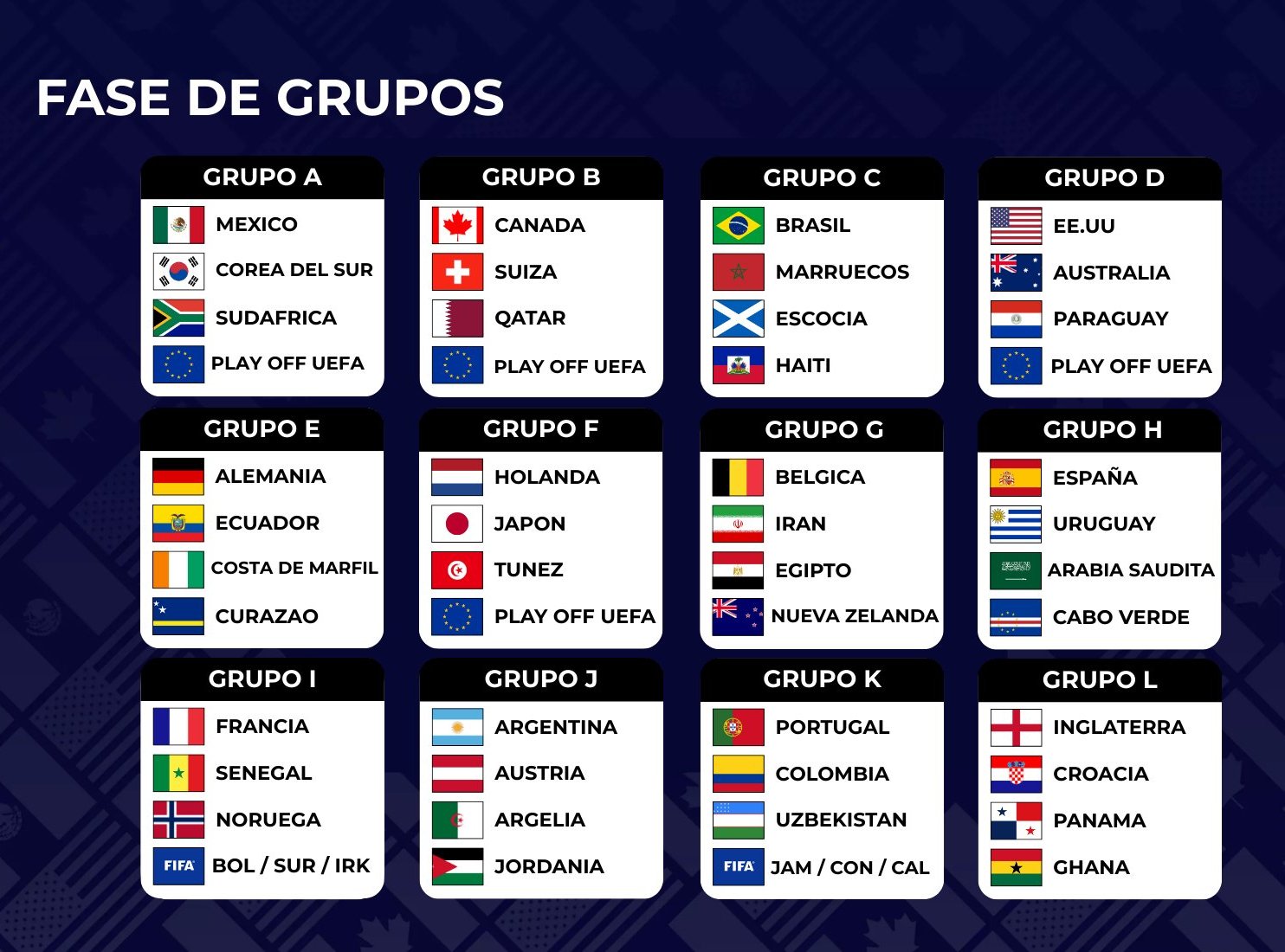 Los bombos del Mundial de Estados Unidos, México y Canadá 2026 repartieron suerte entre las 48 selecciones participantes: 42 ya están clasificadas y los otros seis cupos aún deberán definirse en el repechaje.