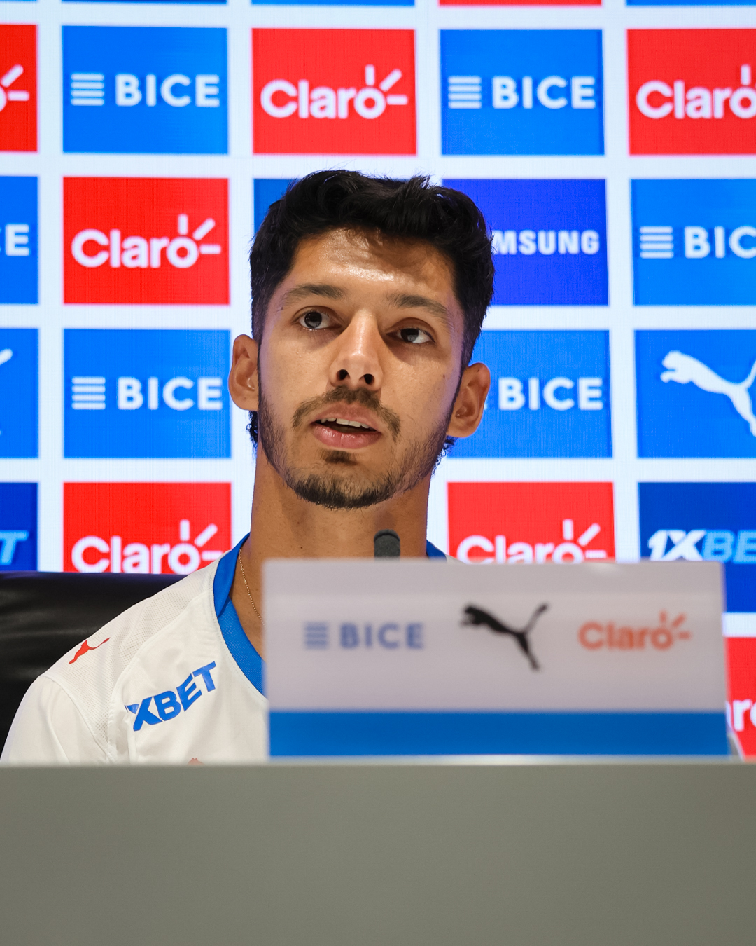 En sala de prensa del Claro Arena, el futbolista nacional estuvo acompañado del vicepresidente Matías Claro y el gerente deportivo, José María Buljubasich.