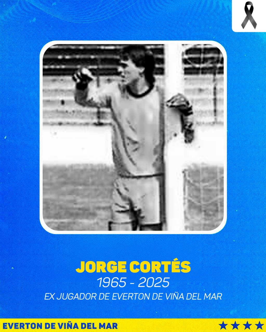 A través de redes sociales, los "ruleteros" indicaron que "con profundo pesar, despedimos al gran Jorge Armando Cortés Villagrán, arquero con más partidos disputados en la historia de Everton de Viña del Mar, con 298 encuentros defendiendo el arco Oro & Cielo".
