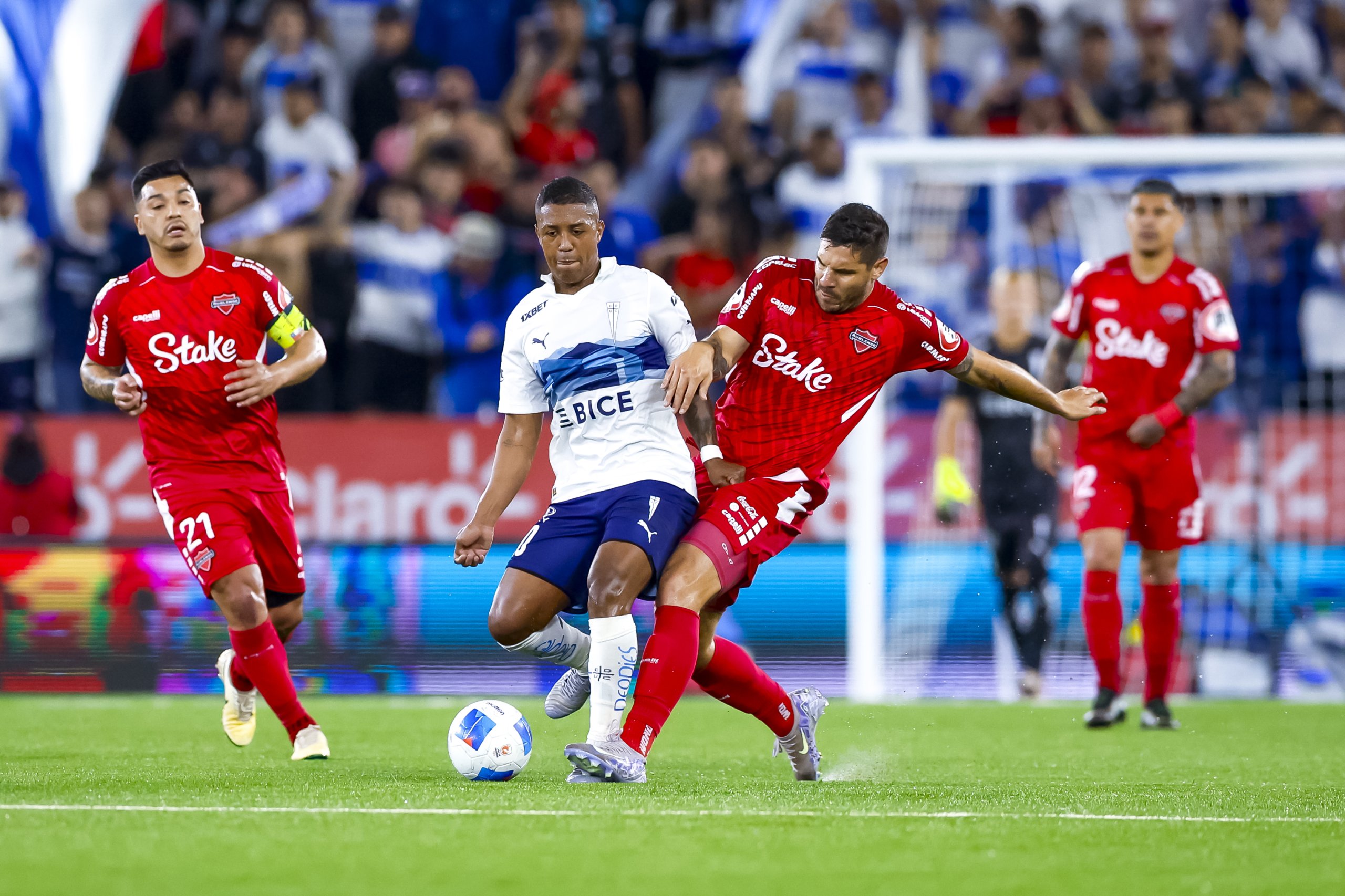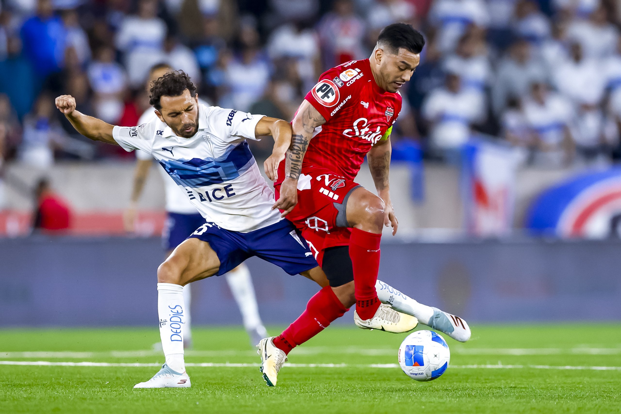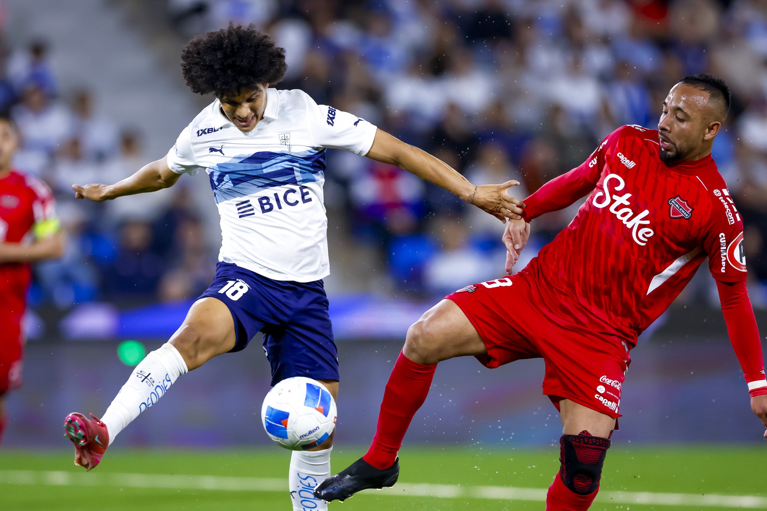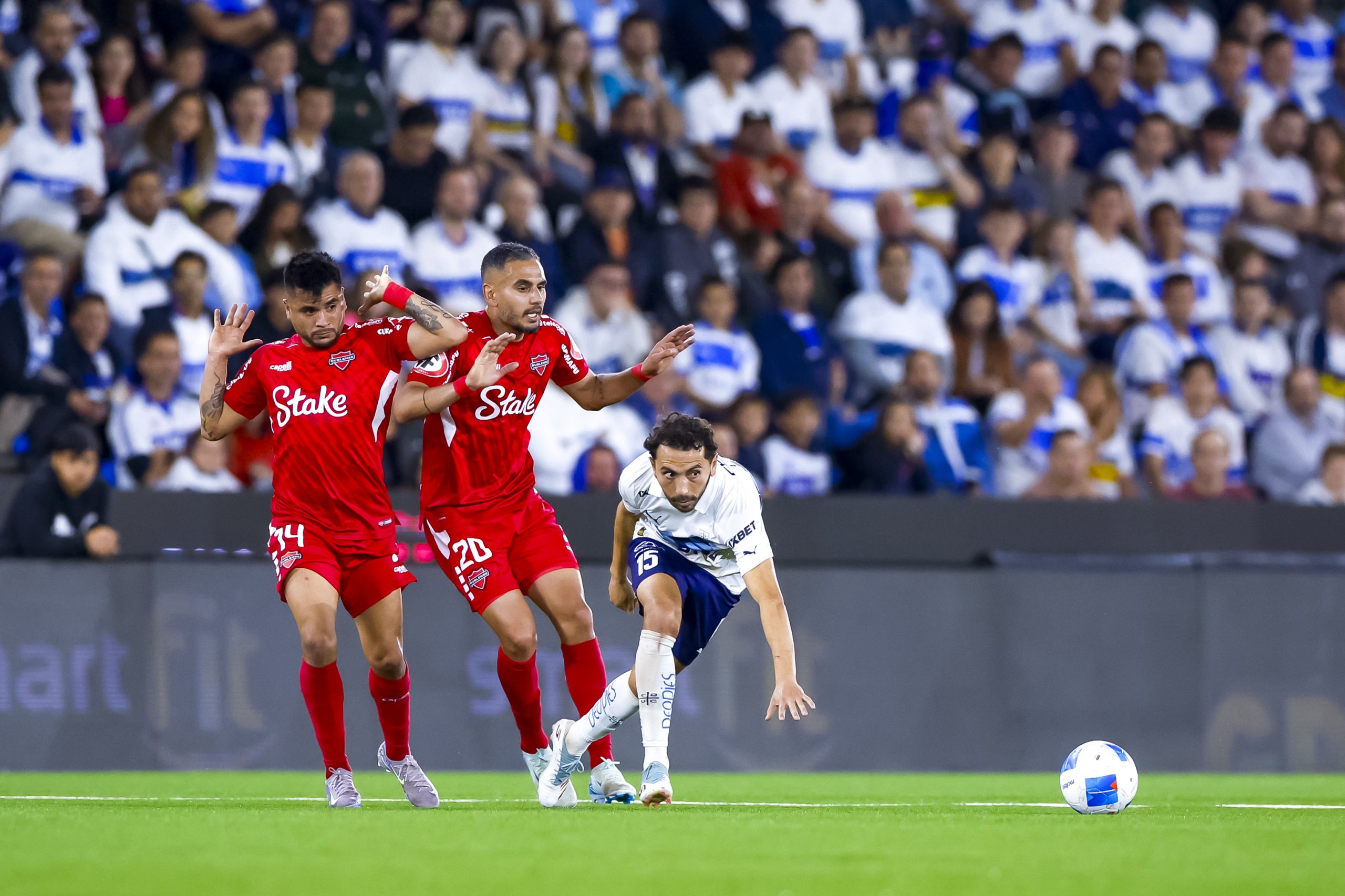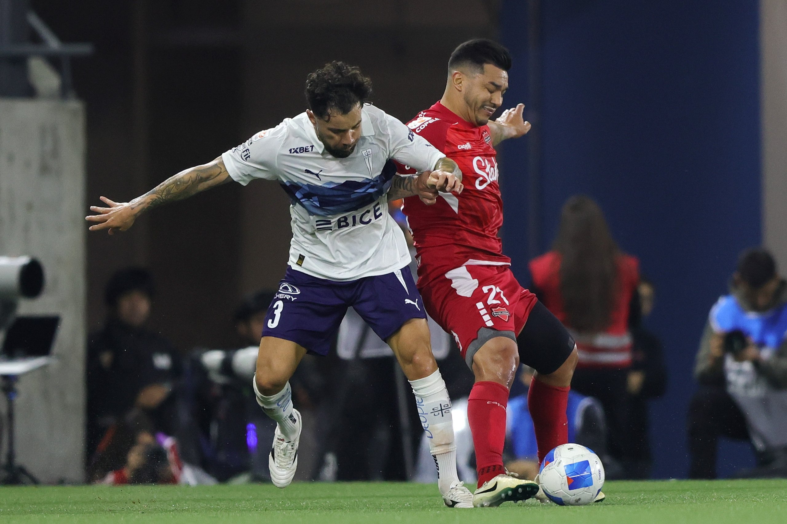 El encuentro no pudo arrancar de mejor manera para la UC. En el minuto tres el árbitro Héctor Jona fue convocado por el VAR para observar una falta de Osvaldo Bosso en el borde del área y expulsó al defensa sureño. Y en el tiro libre posterior, Eduard Bello puso la pelota en un lugar inalcanzable para el portero Nicola Pérez, anotando la apertura de la cuenta.