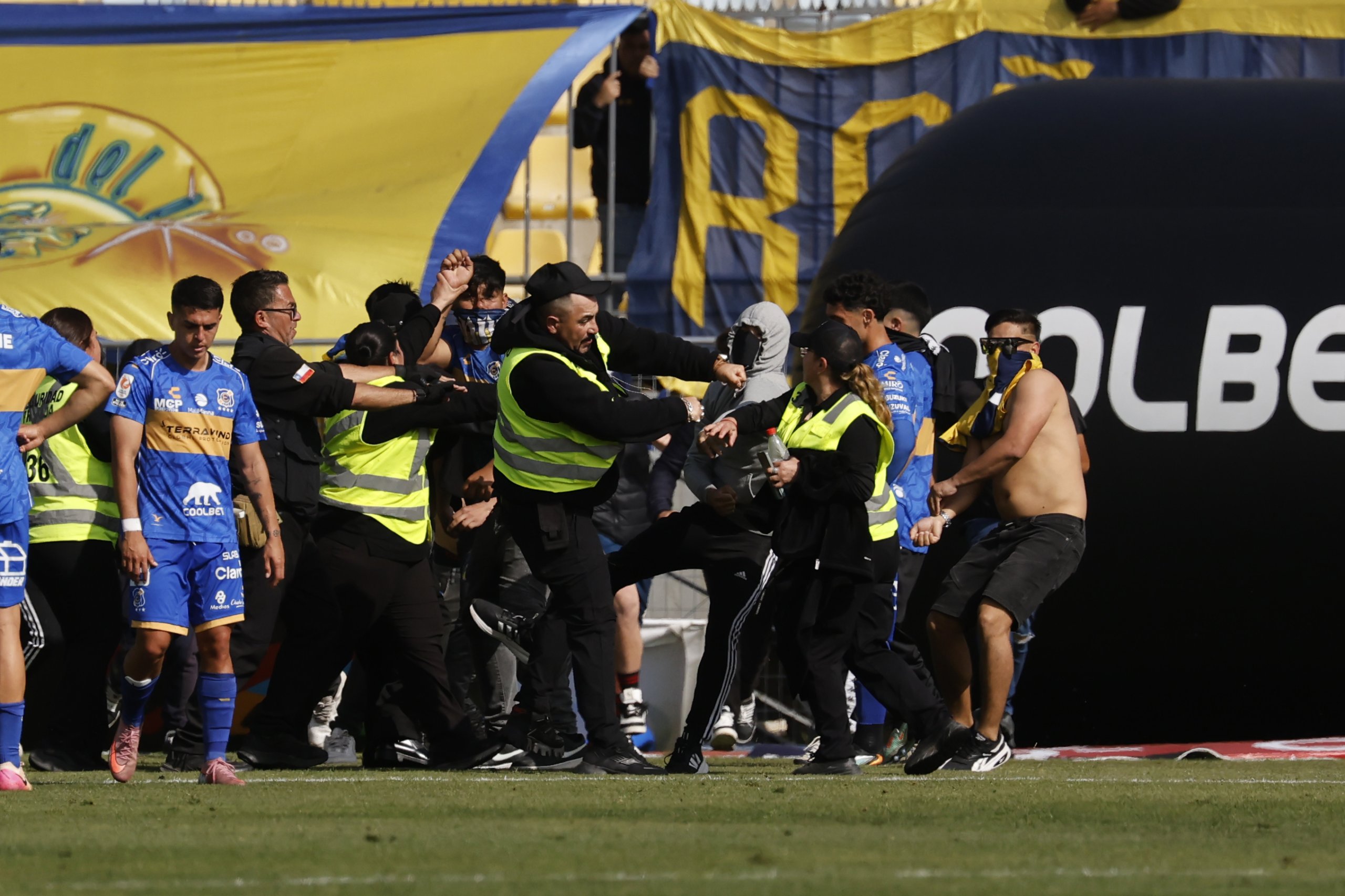 El final del duelo se vio empañado por el ingreso de un puñado de mal llamado hinchas del combinado auriazul, quienes provocaron desmanes y se enfrascaron en una confrontación directa con el personal de seguridad, obligando a la intervención de efectivos policiales y a la posterior suspensión del cotejo.