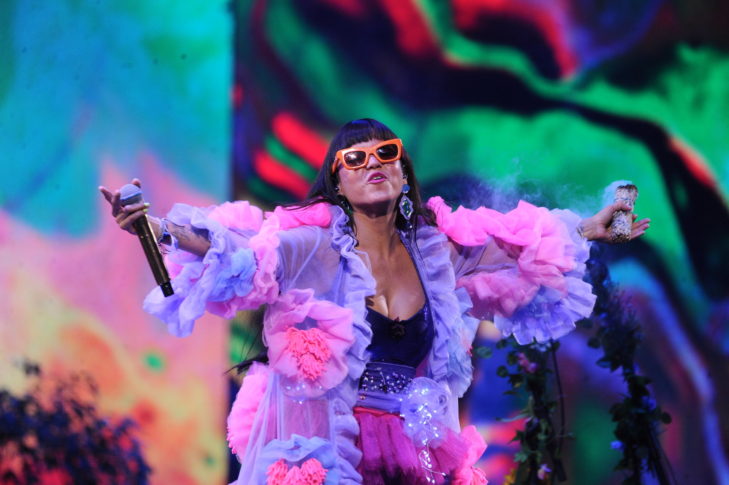 Cuando el reloj ya casi marcaba las 2:00 horas, llegó el turno del número final: Bomba Estéreo, cuya vocalista, Li Saumet, interpretó sus éxitos más conocidos, para lo cual invitó al escenario a la chilena Flor de Rap, con quien cantó «Soy yo».