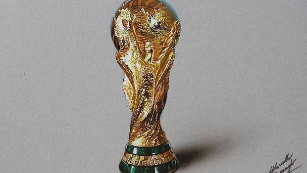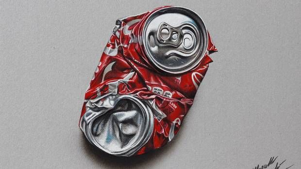 Los dibujos del italiano Marcello Barenghi son capaces de engañar a cualquiera. Sus diseños son casi tan naturales como la propia realidad. Y es capaz de recrear con absoluta fidelidad objetos tan variados como una botella de vodka, un vaso, un bote de refresco aplastado o la mismísima Copa del Mundo.