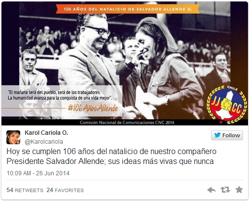 Políticos y familiares conmemoran el natalicio 106 del ex Presidente Salvador Allende