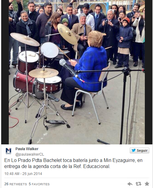 En la comuna de Lo Prado, la presidenta Michelle Bachelet tocó batería junto al ministro Eyzaguirre en la entrega de la agenda corta de la Reforma Educacional.