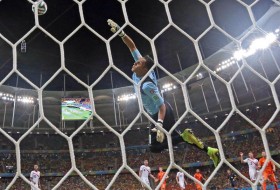 Paró un mano a mano a Robin Van Persie, que consiguió disparar por primera vez para su equipo en el minuto 21; después, con los pies, evitó un tanto a Memphis Depay, la gran novedad de Holanda, que alineó por primera vez desde el inicio a su joven jugador; Snjeider fue el tercero en chocar con Navas, que voló para despejar una falta del centrocampista destinada a ir a la escuadra.