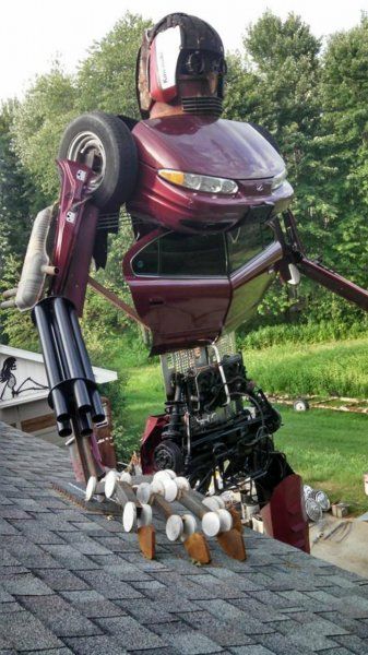 Meses le tomó la escultura, pero valió la pena ya que hoy tiene un fantástico robot de 23 metros en el patio de su casa.