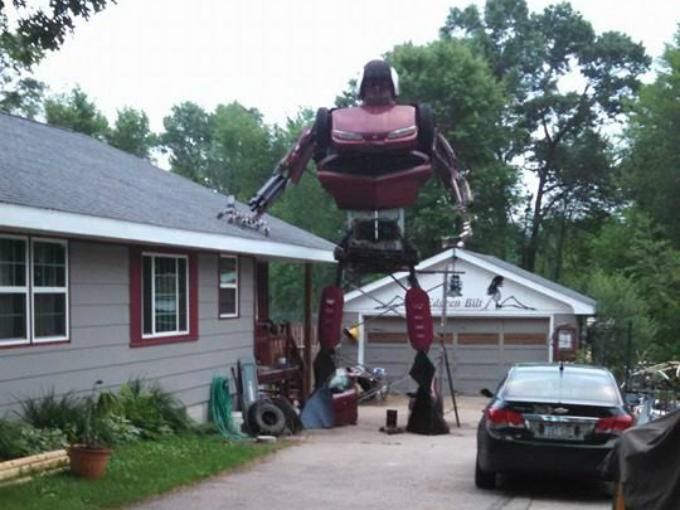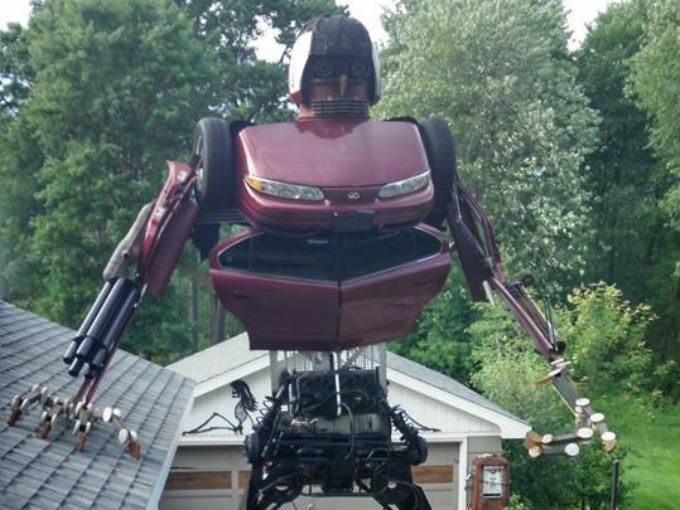 Hombre fanático construyó un transformer de 23 metros en su casa