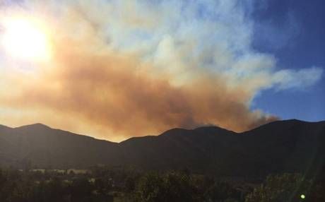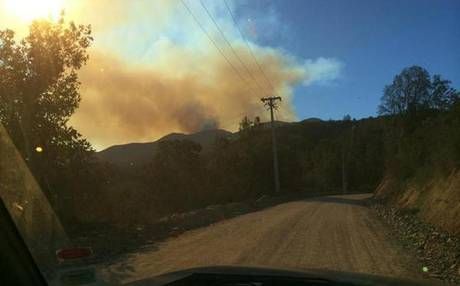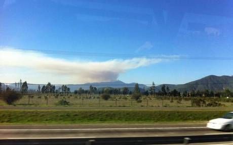Dos técnicos de Conaf (Corporación Nacional Forestal) se encuentran en el terreno para determinar dónde se encuentra el foco del incendio.