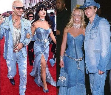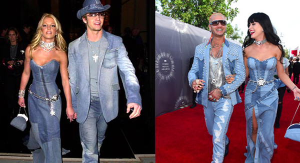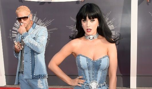 Pero nada fue coincidencia, porque desde hace días Perry había anunciado una sorpresa para el certamen, donde llegó acompañada por el hiphopero llamado Riff Raff, quien también llevaba un traje completo de jeans.