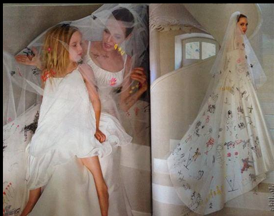 Lo que más destacó del secreto matrimonio de la pareja más sexy del mundo, fue conocer el vestido de la novia que finalmente compró People y Hello!.