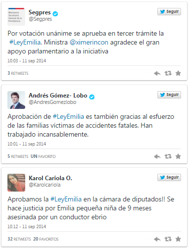 Diversos actores políticos celebraron la medida y destacaron el rol que cumplieron en la génesis y tramitación del proyecto, los familiares de víctimas de accidentes de tránsito causados por conductores ebrios.