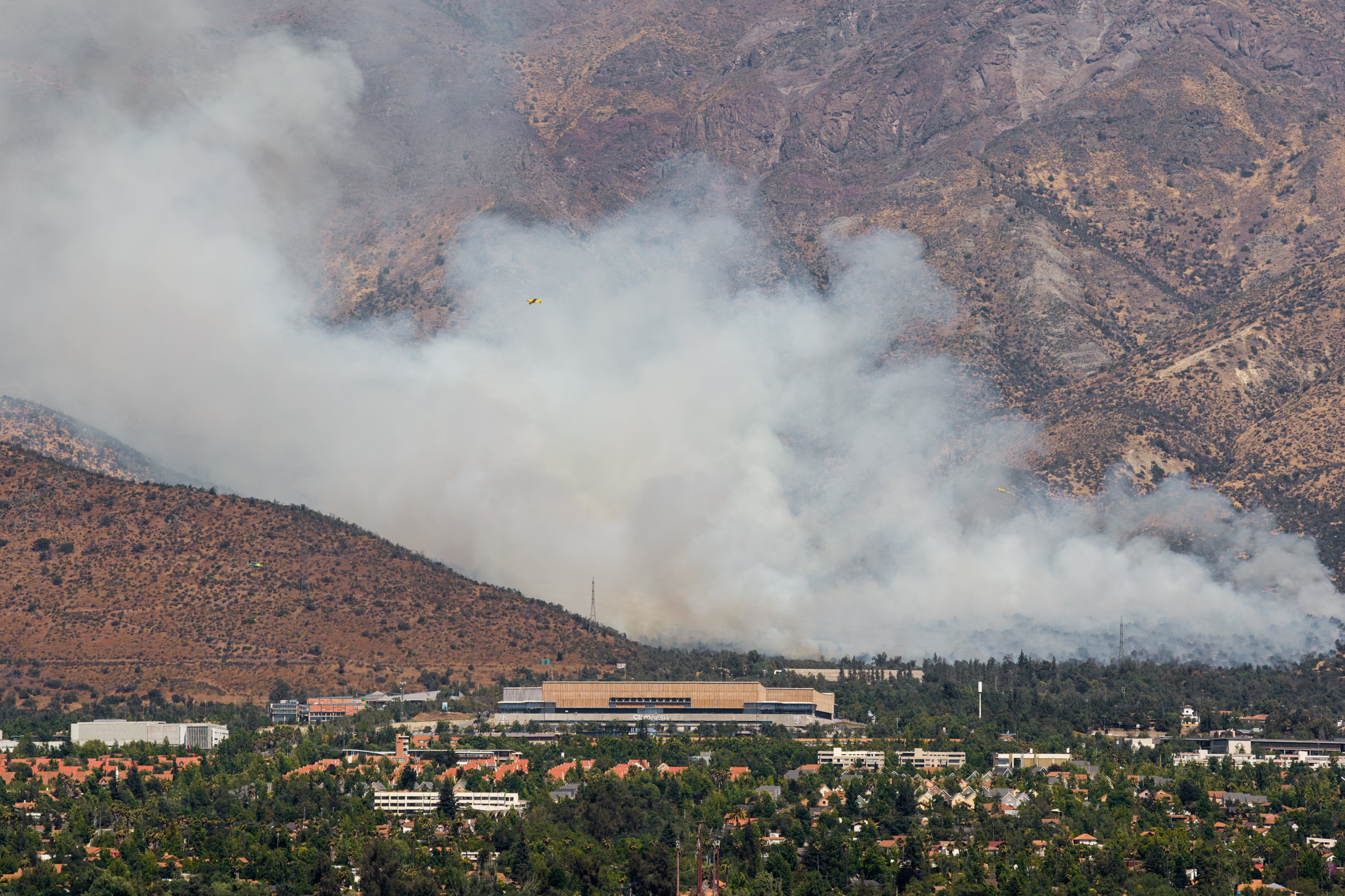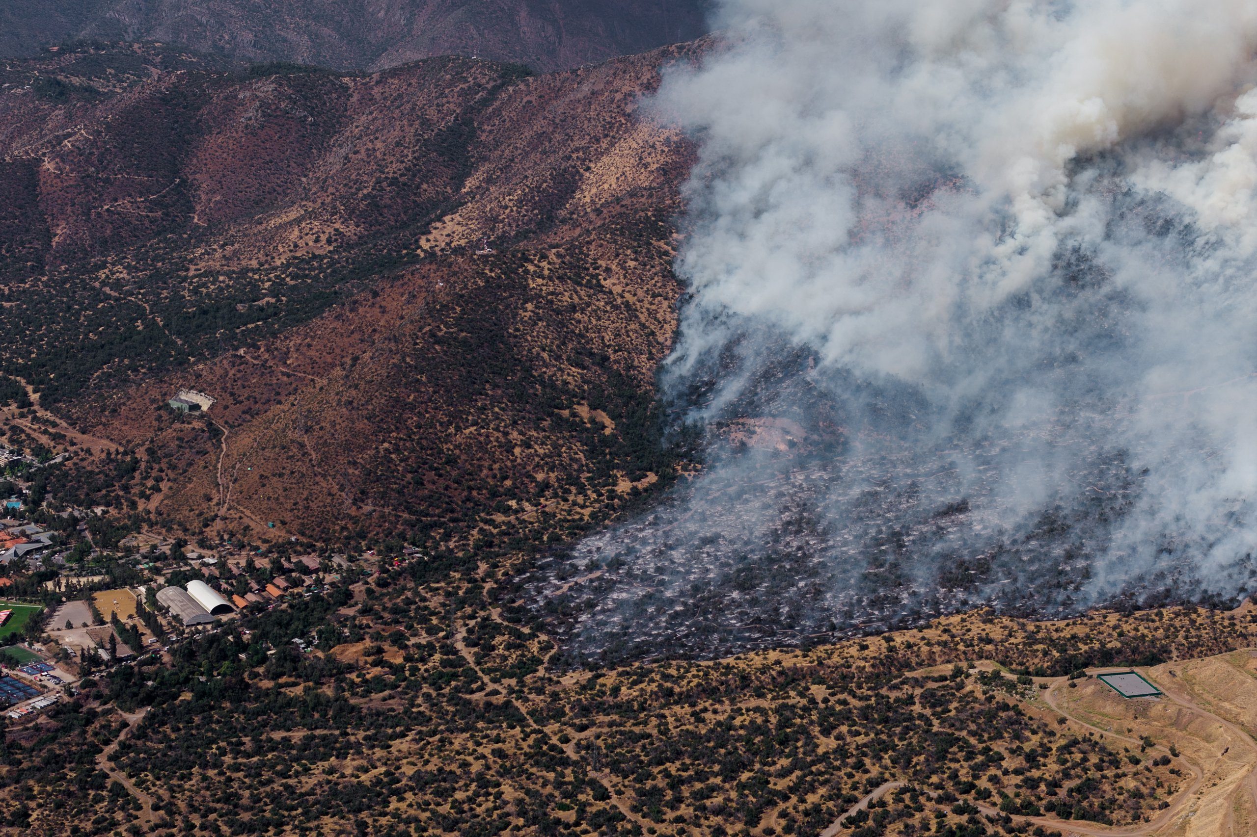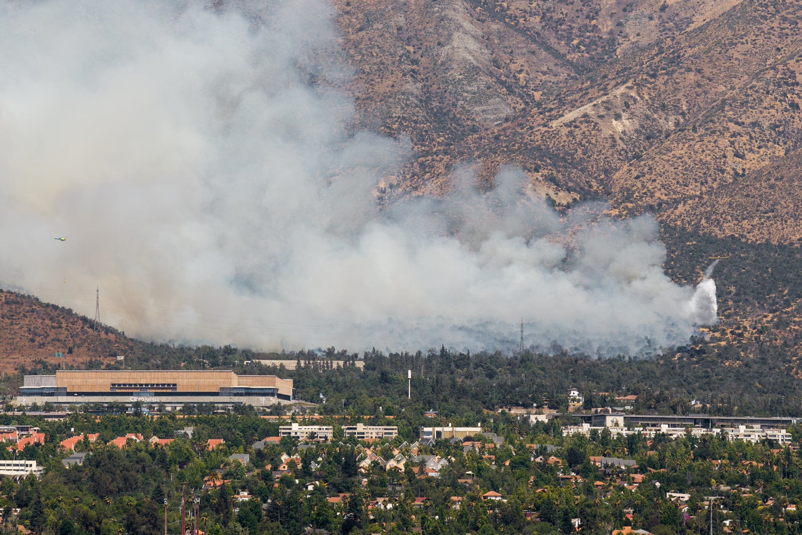 Un incendio forestal se registra en el sector de San Carlos de Apoquindo en la comuna de Las Condes, región Metropolitana, donde han concurrido 14 compañías de bomberos y personal de la Corporación Nacional Forestal (Conaf).
