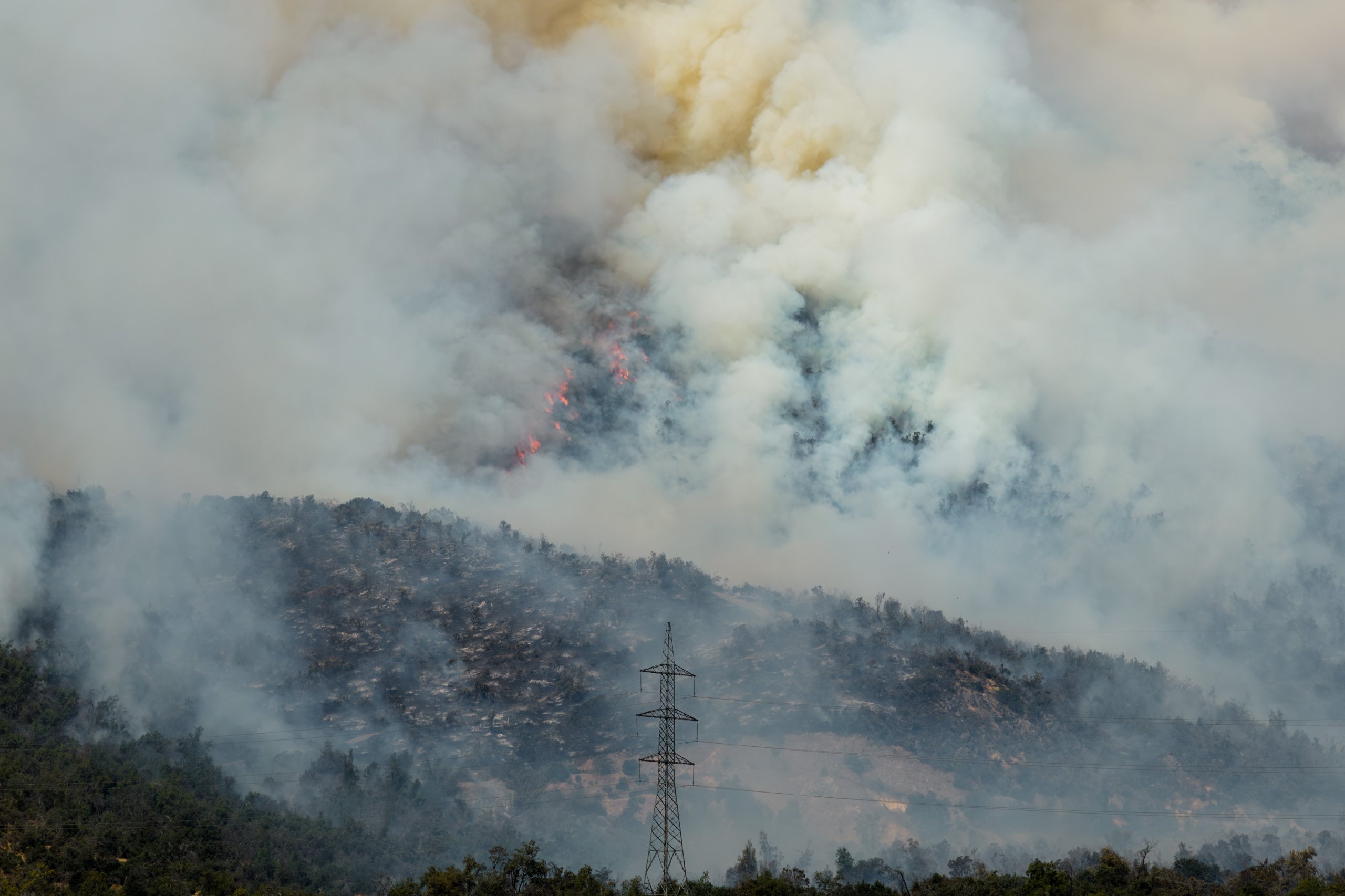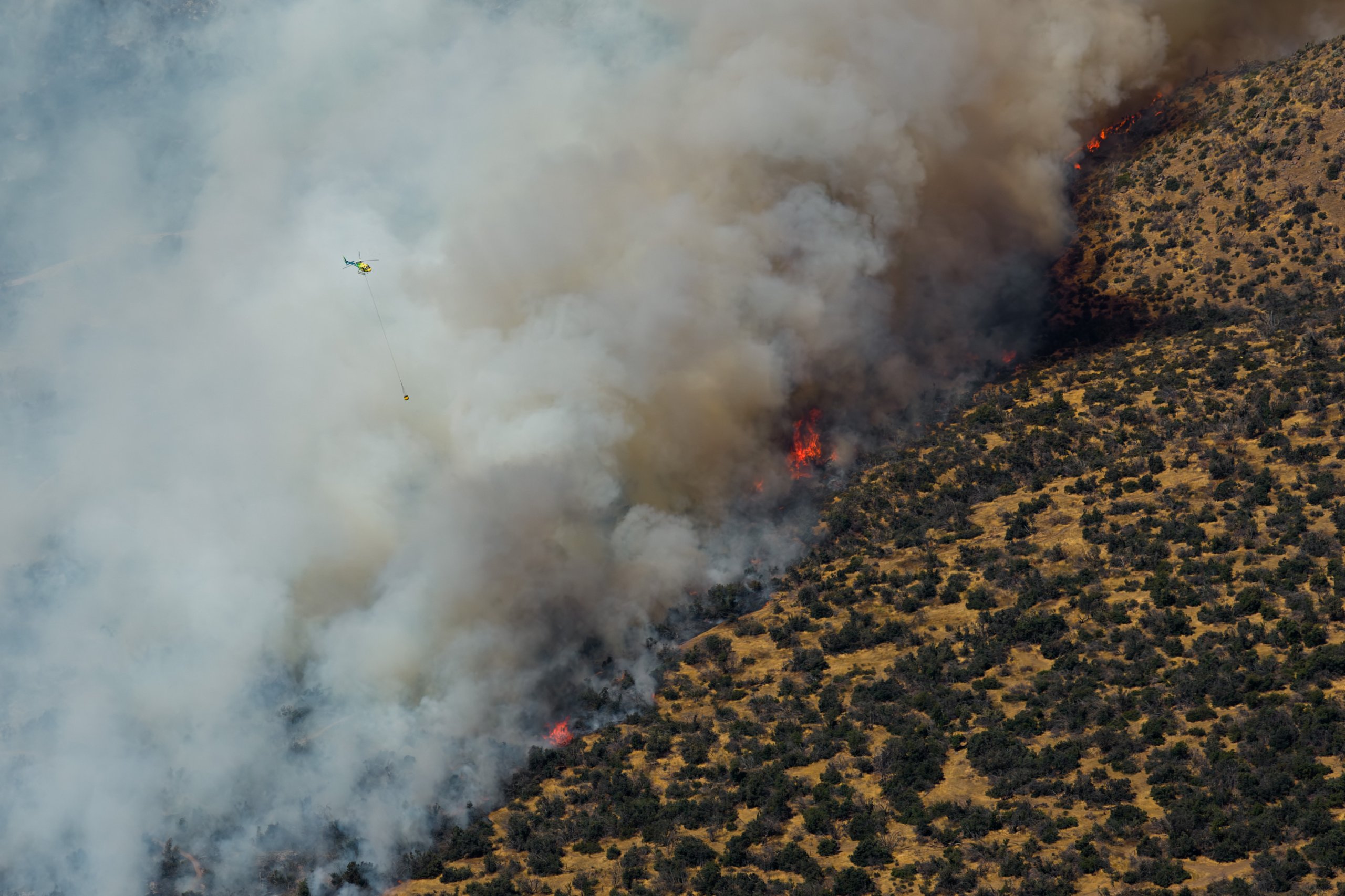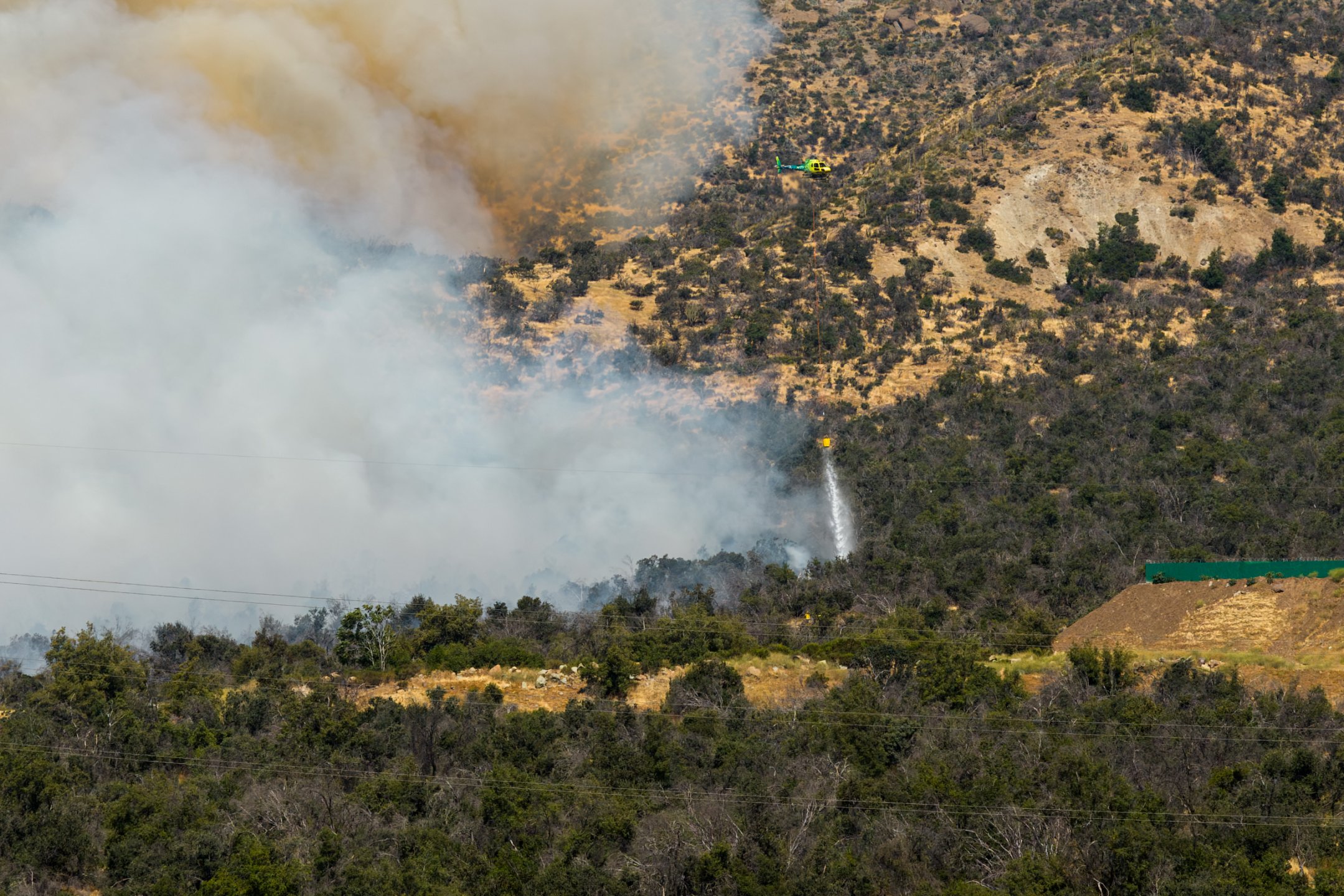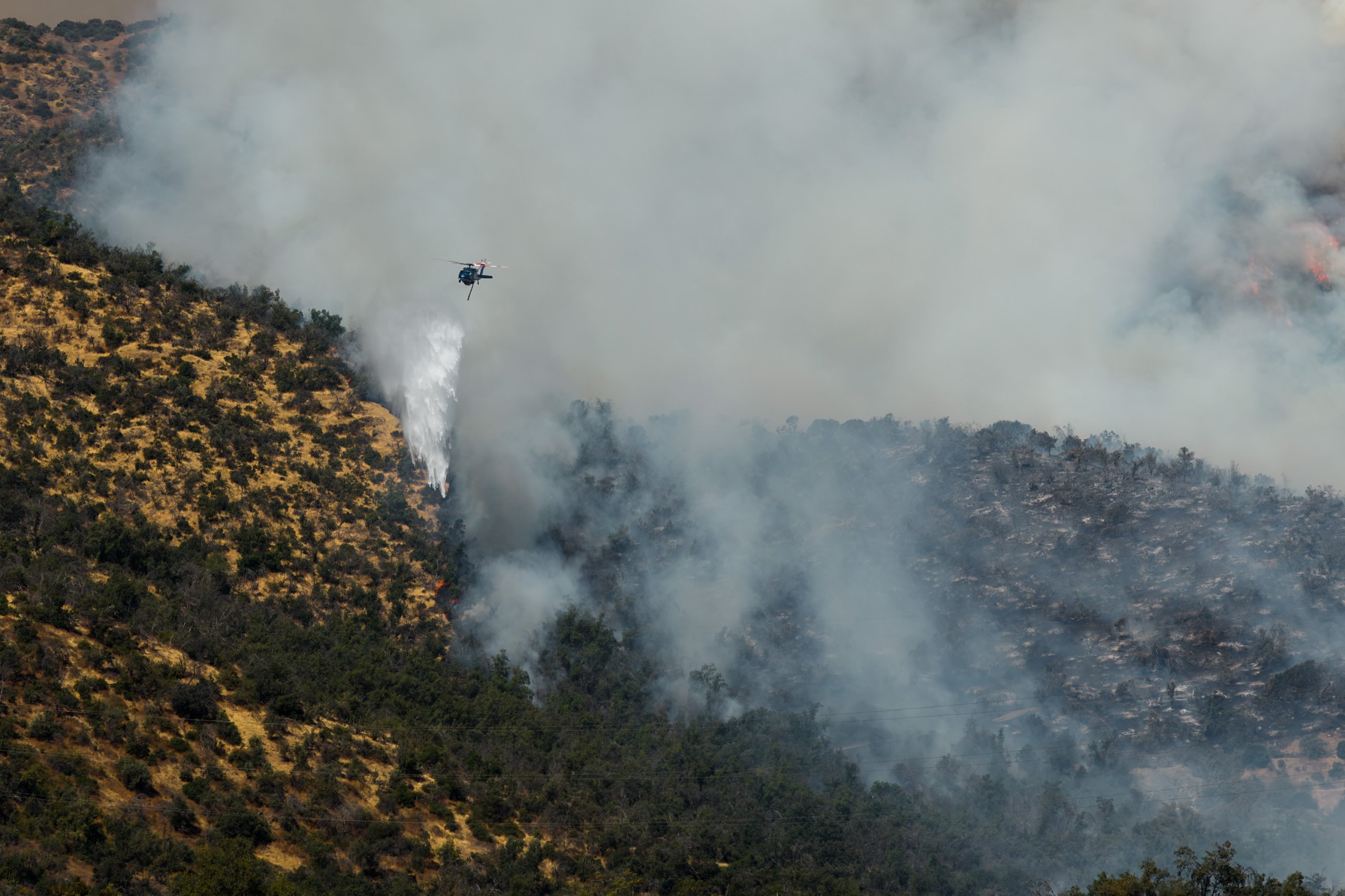 Un incendio forestal se registra en el sector de San Carlos de Apoquindo en la comuna de Las Condes, región Metropolitana, donde han concurrido 14 compañías de bomberos y personal de la Corporación Nacional Forestal (Conaf).