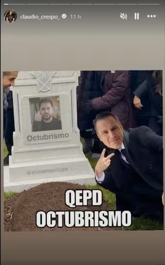 Asimismo, en el costado de la imagen se aprecia el rostro del exuniformado posando frente a la tumba. También se encuentra otra frase en alusión al 18-O: "Q.E.P.D. octubrismo".