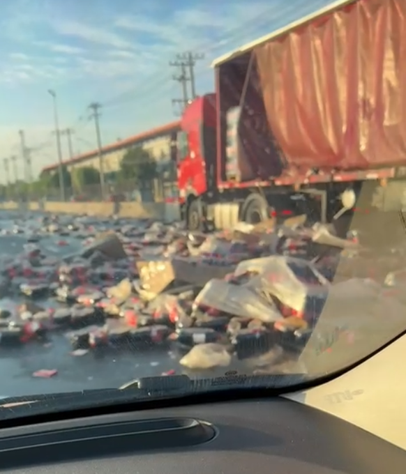 De acuerdo con información entregada por Transporte Informa, el hecho se registra en las cercanías del Nudo Quilicura, en sentido hacia el sur, donde un vehículo de carga que trasladaba bebidas gaseosas sufrió el desprendimiento de parte de su mercancía.