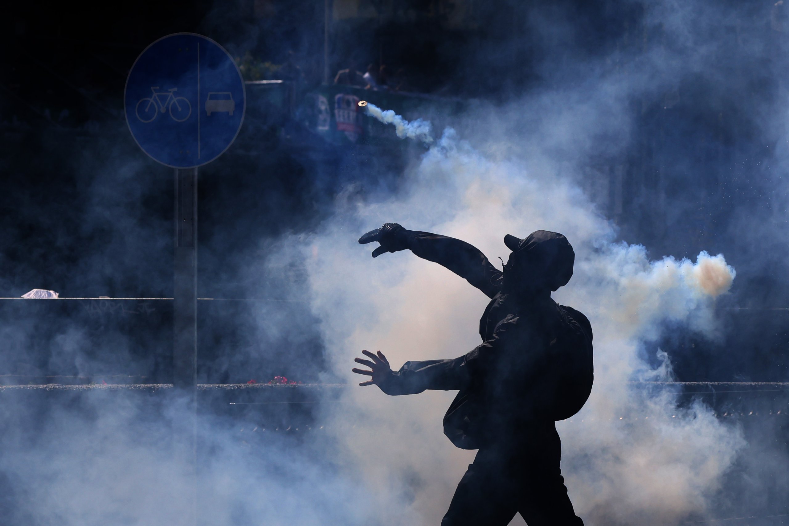 En las inmediaciones del Ministerio de Educación se registraron barricadas y lanzamiento de objetos contundentes, lo que derivó en la intervención del personal de Control de Orden Público (COP) de Carabineros.
