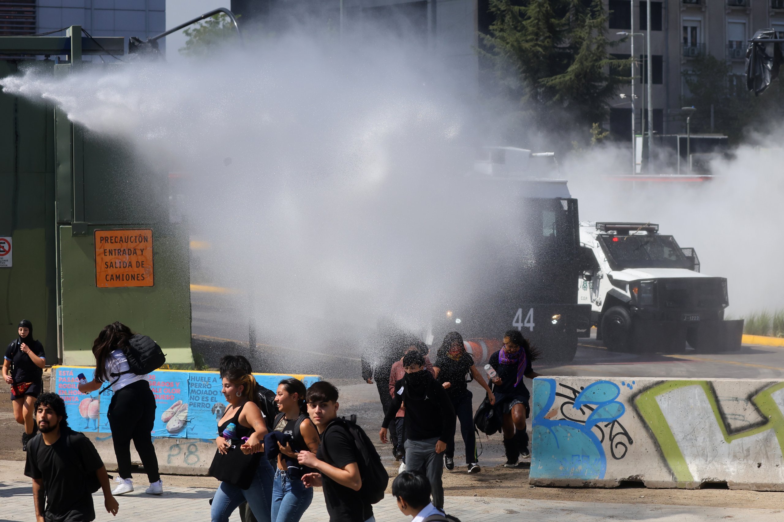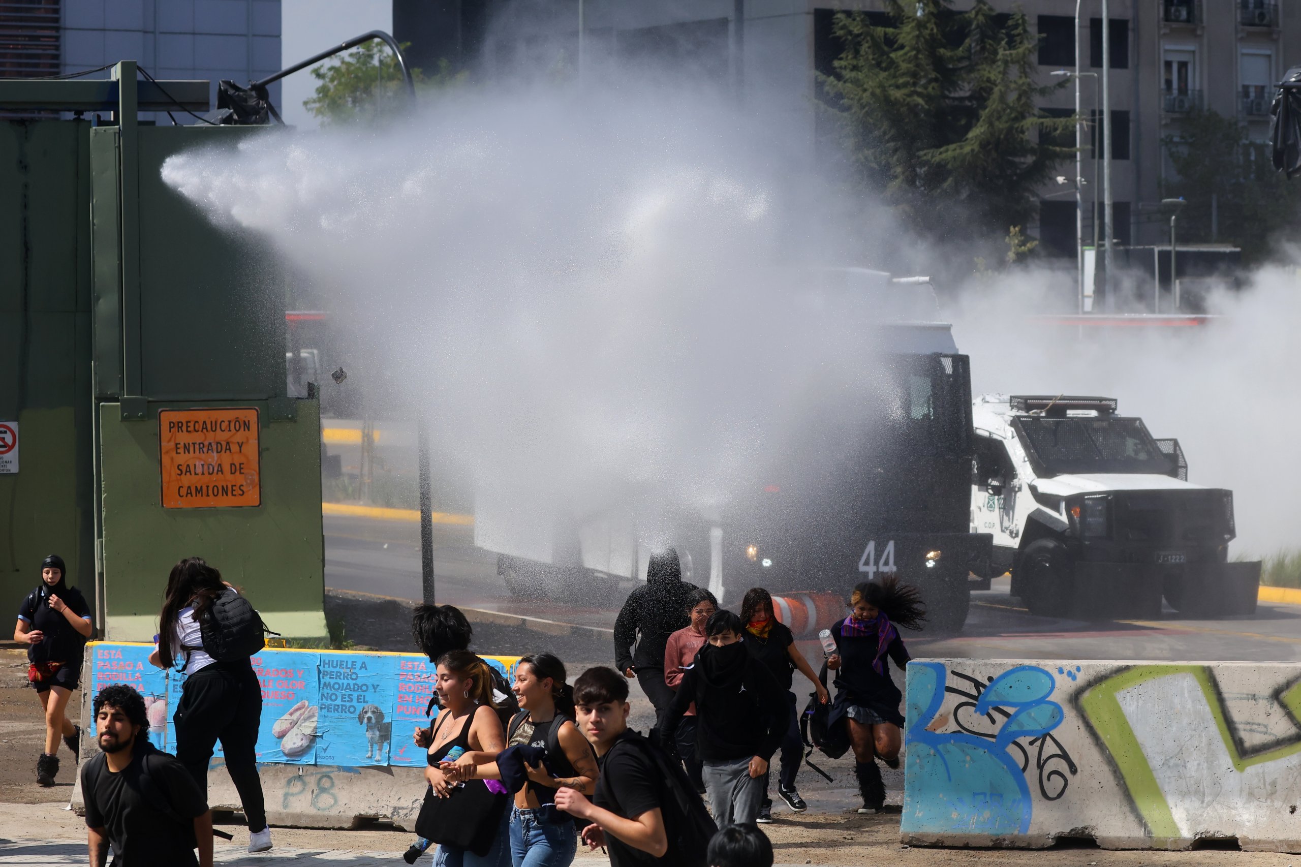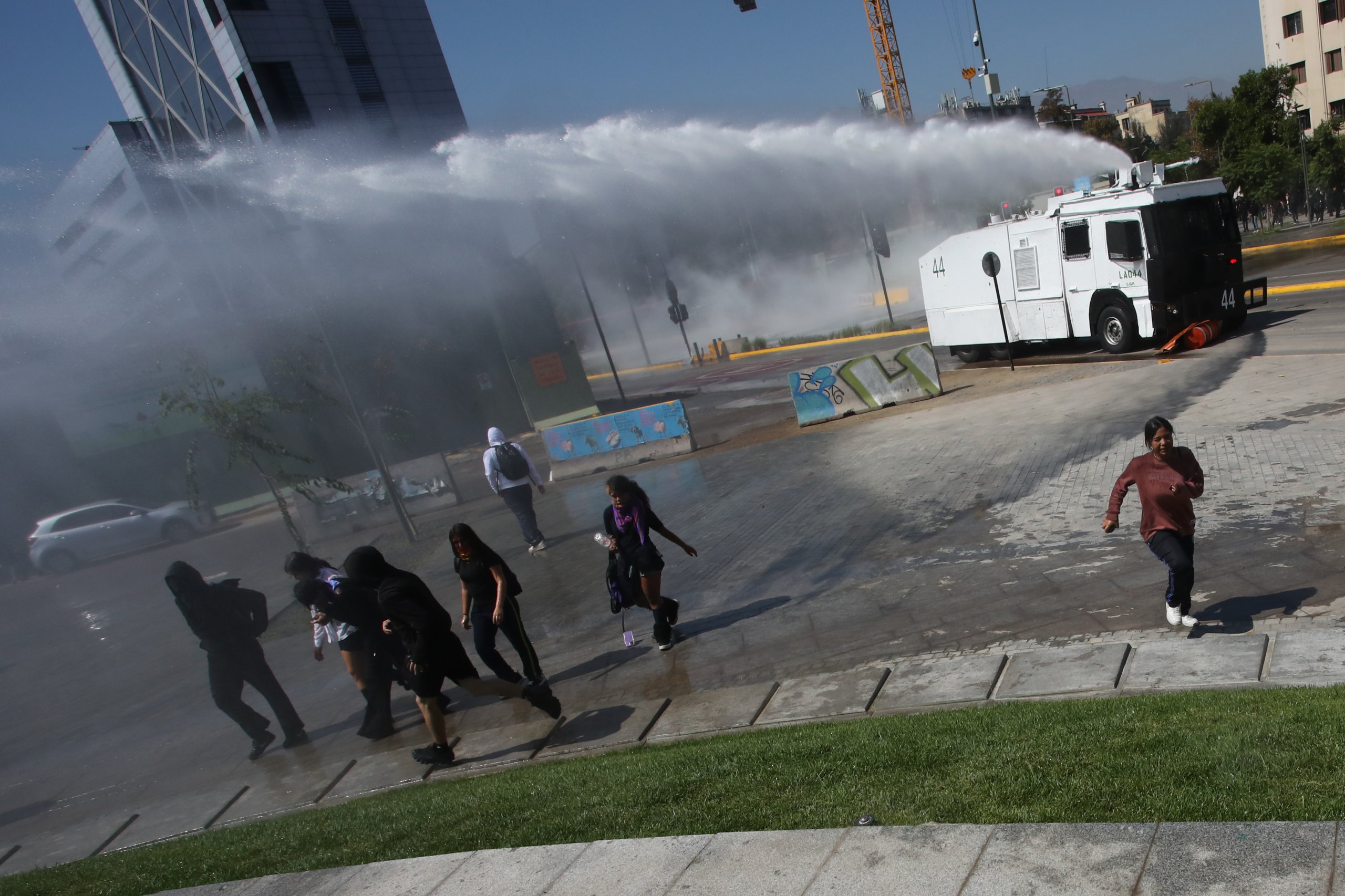 Posteriormente, los manifestantes se desplazaron hacia plaza Baquedano, donde fueron dispersados con carros lanzaagua.