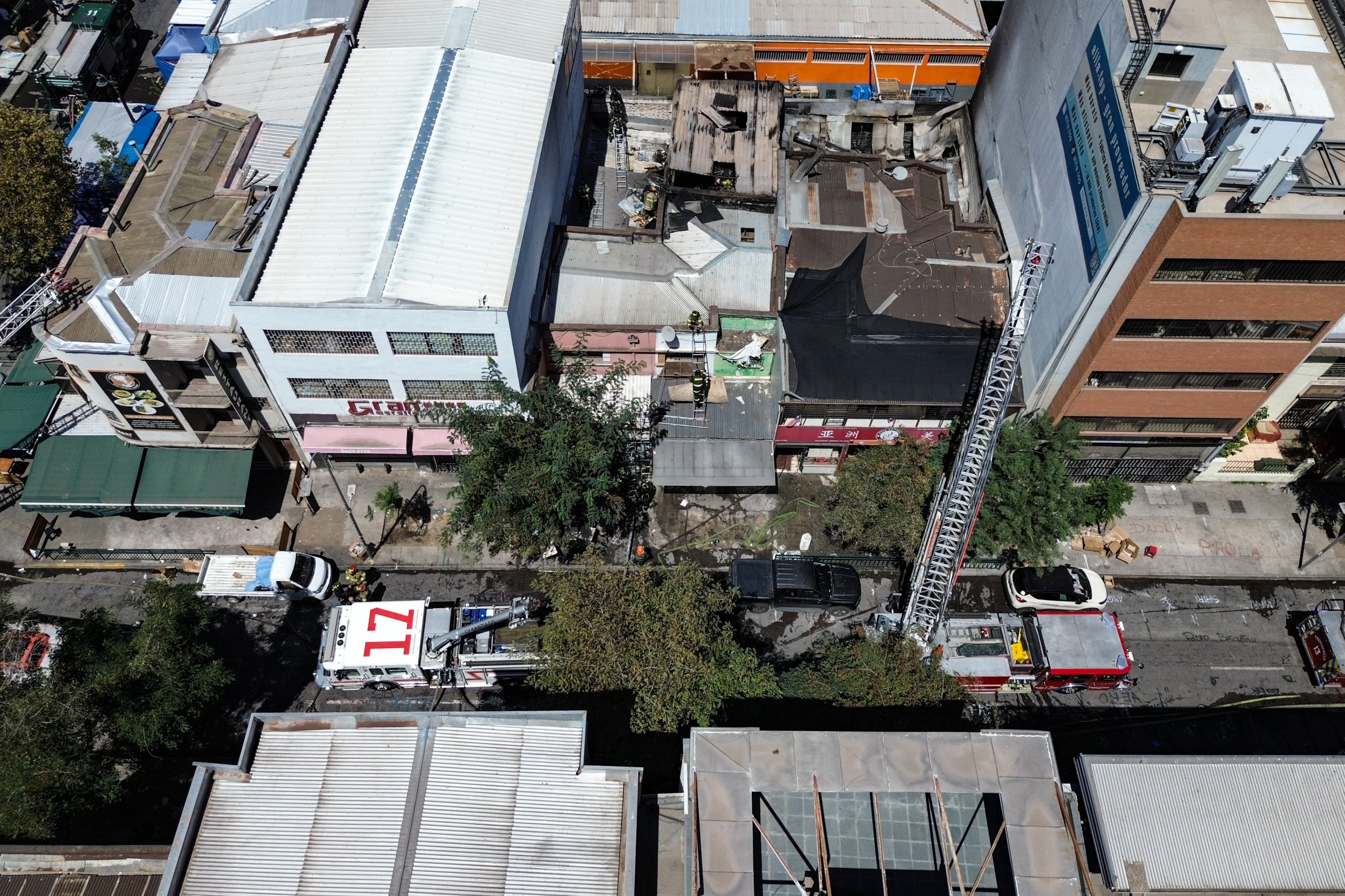 Máquinas de nueve compañías de bomberos y muchos efectivos debieron trasladarse hasta el local comercial ubicado en calle Sazié con Bascuñán Guerrero, en la comuna de Santiago.