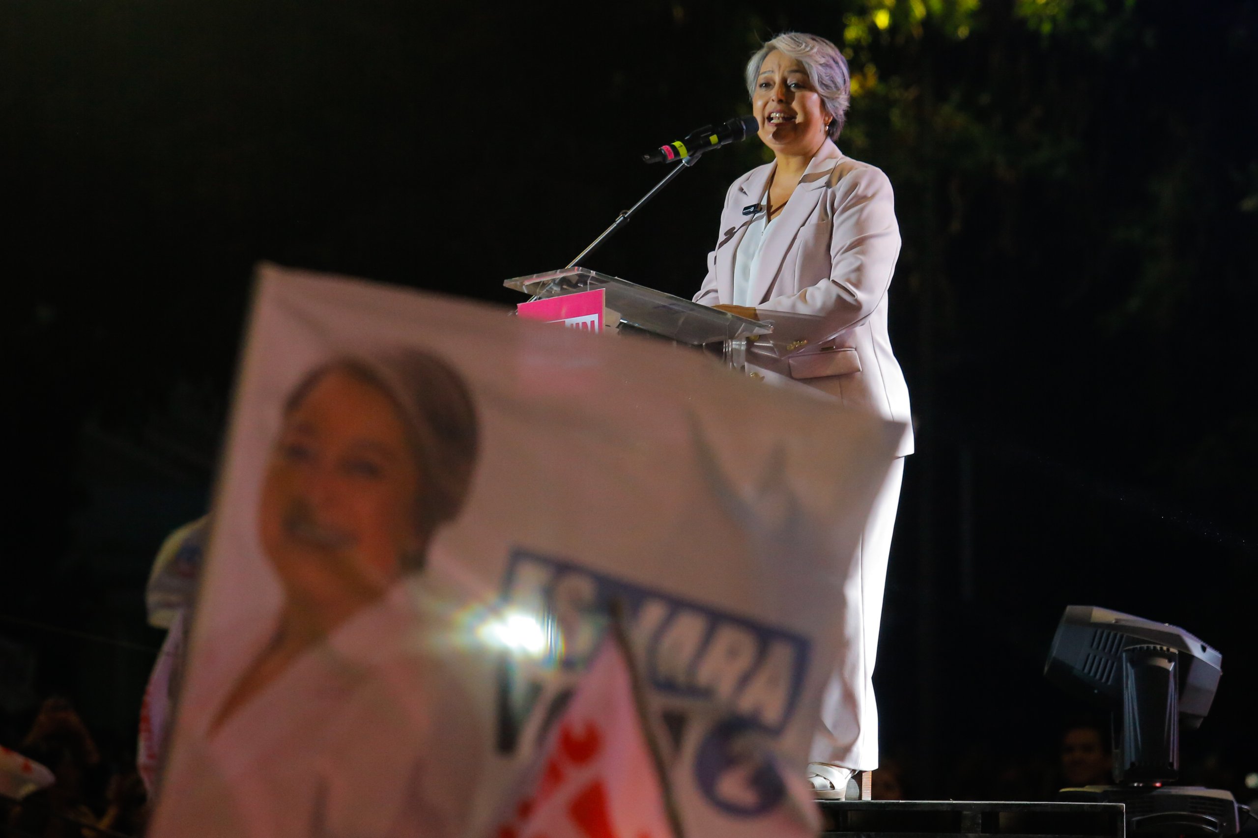 En su discurso, la candidata destacó que "hemos recorrido un largo camino para llegar acá y lo hemos hecho juntos. Ha sido una campaña intensa, de mucho esfuerzo, de compromiso y de convicción, pero eso es lo que nos mueve en la vida, eso es lo que nos motiva”.