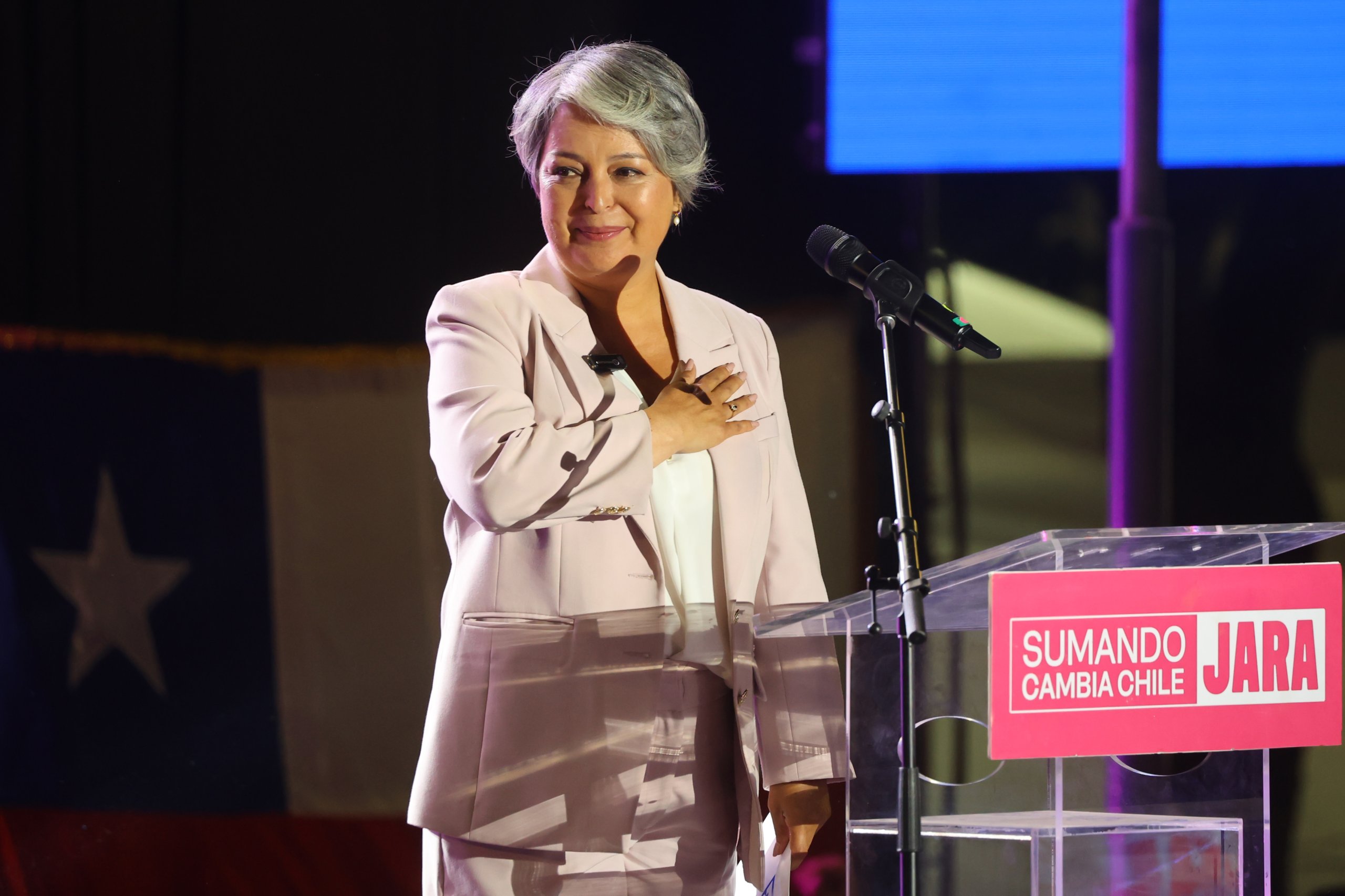 Jara en su discurso destacó que "hemos recorrido un largo camino para llegar acá y lo hemos hecho juntos. Ha sido una campaña intensa, de mucho esfuerzo, de compromiso y de convicción, pero eso es lo que nos mueve en la vida, eso es lo que nos motiva”.