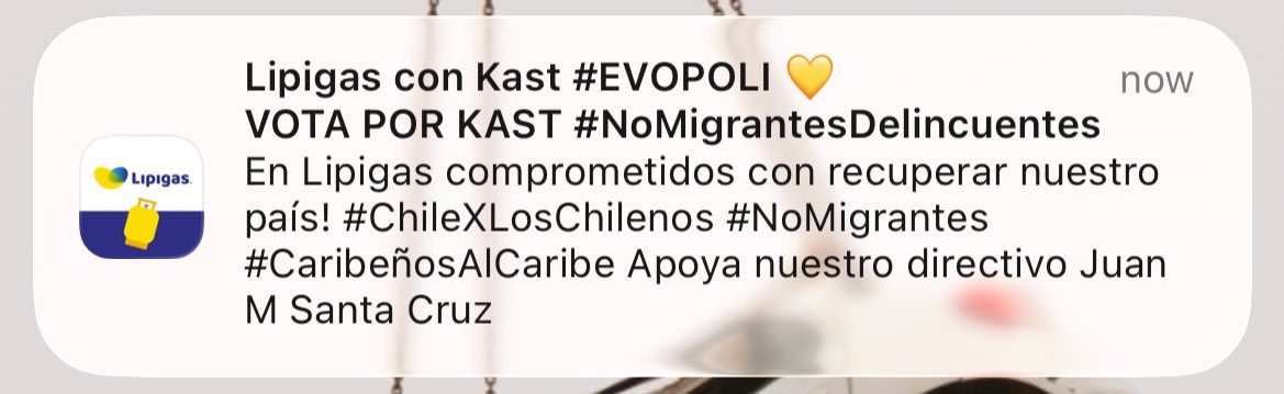 “Lipigas por Kast #Evólpoli. Vota por Kast #NoMigrantesDelincuentes. En Lipigas, comprometidos con recuperar nuestro país! #ChileXLosChilenos #NoMigrantes #CaribeñosAlCaribe Apoya nuestro directivo Juan M Santa Cruz”, dice el mensaje denunciado por el comando de Jeannette Jara.
