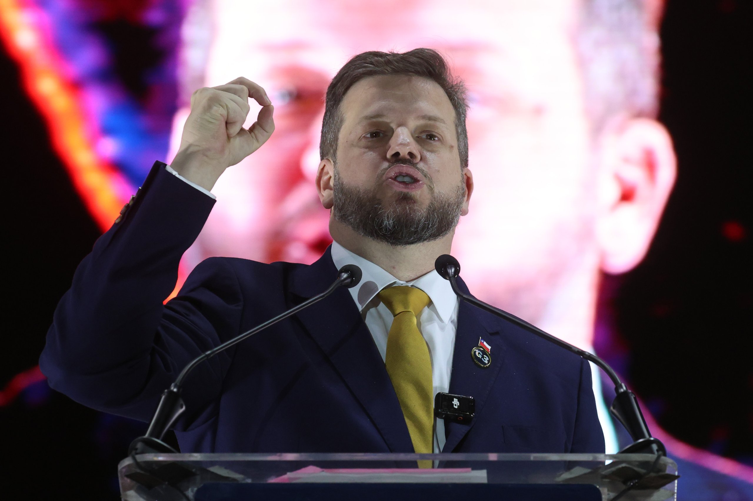 El diputado inició su intervención inició su intervención refiriéndose a los cánticos que se escucharon durante el acto de campaña de Jeannette Jara: “Yo no salto y estaría orgulloso de ser carabinero”.