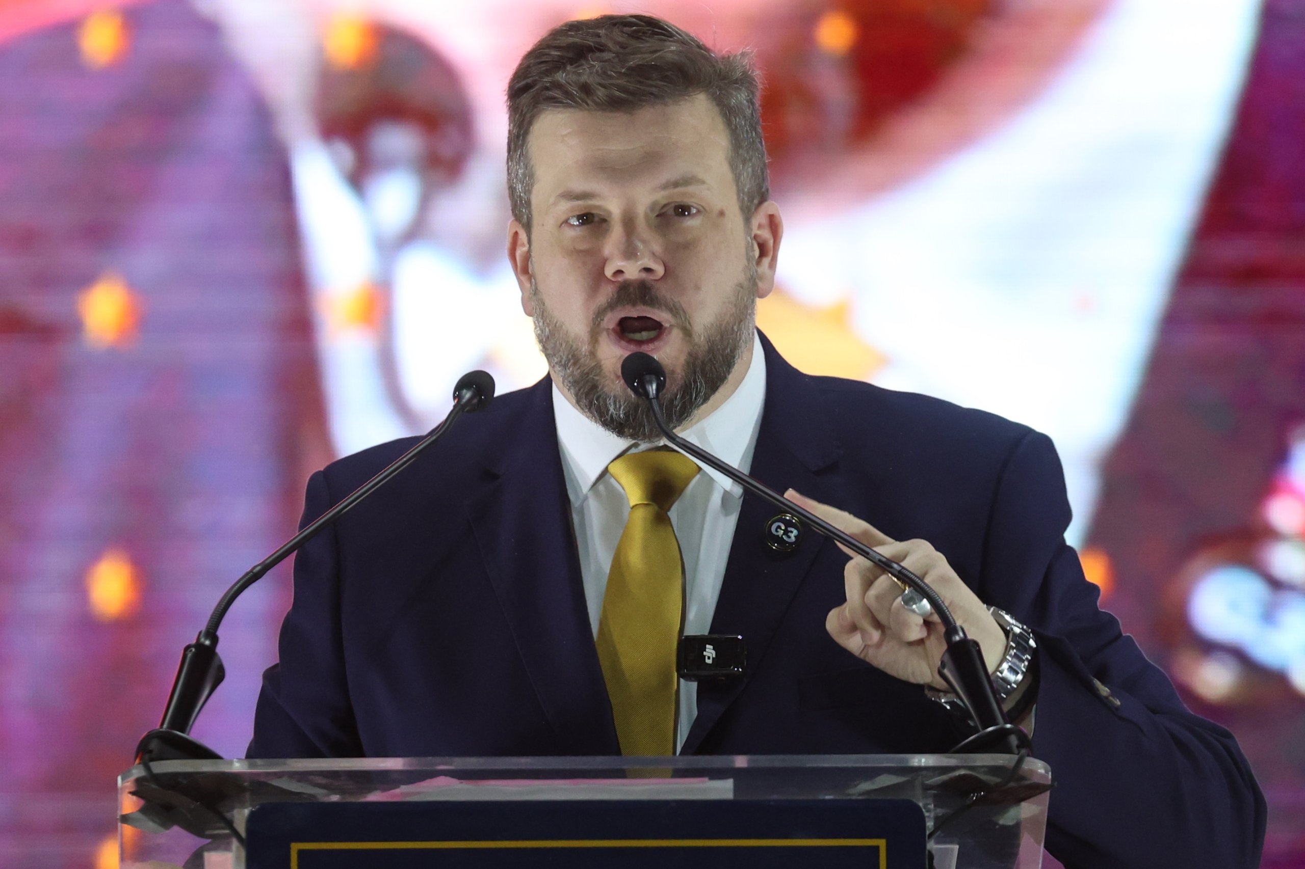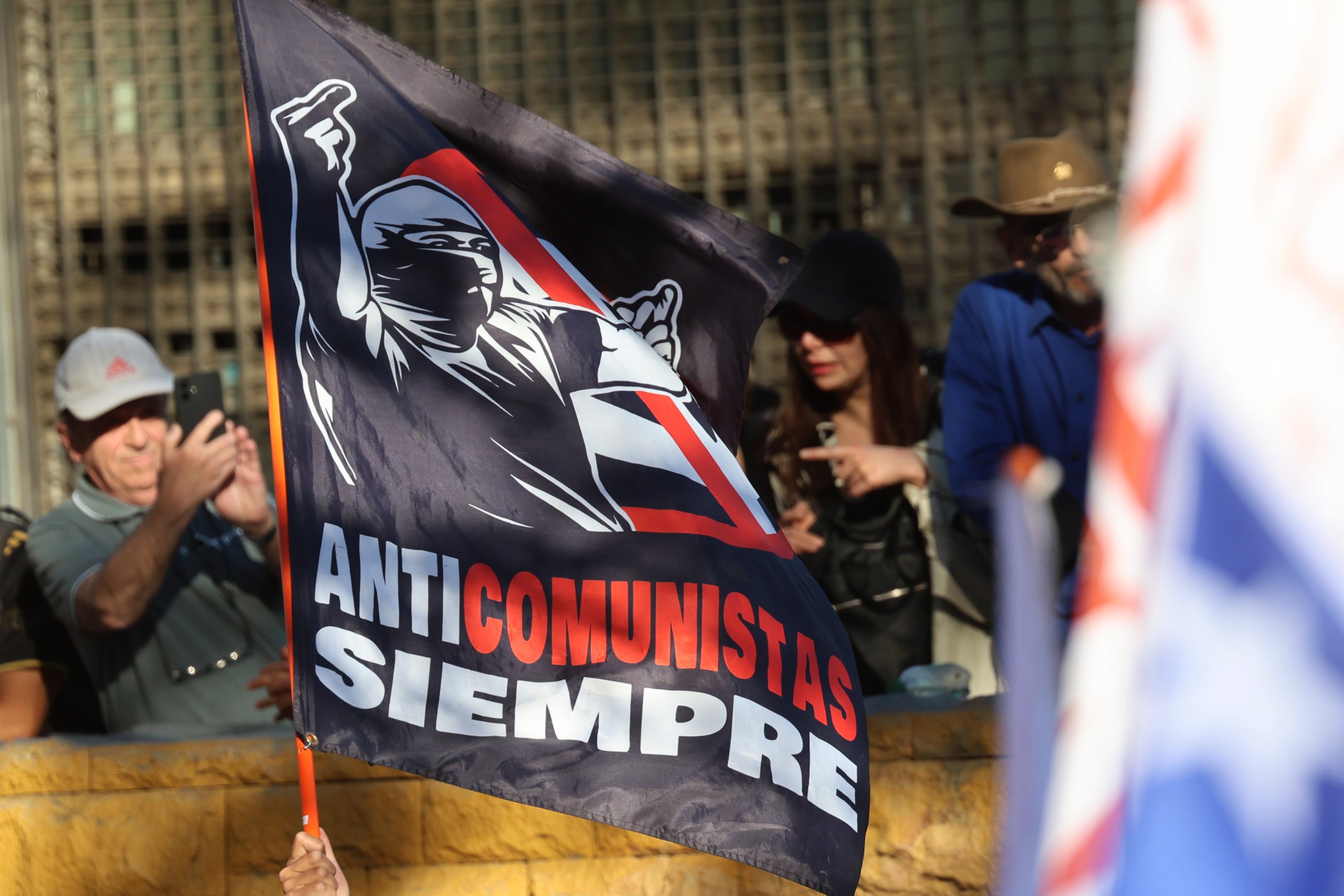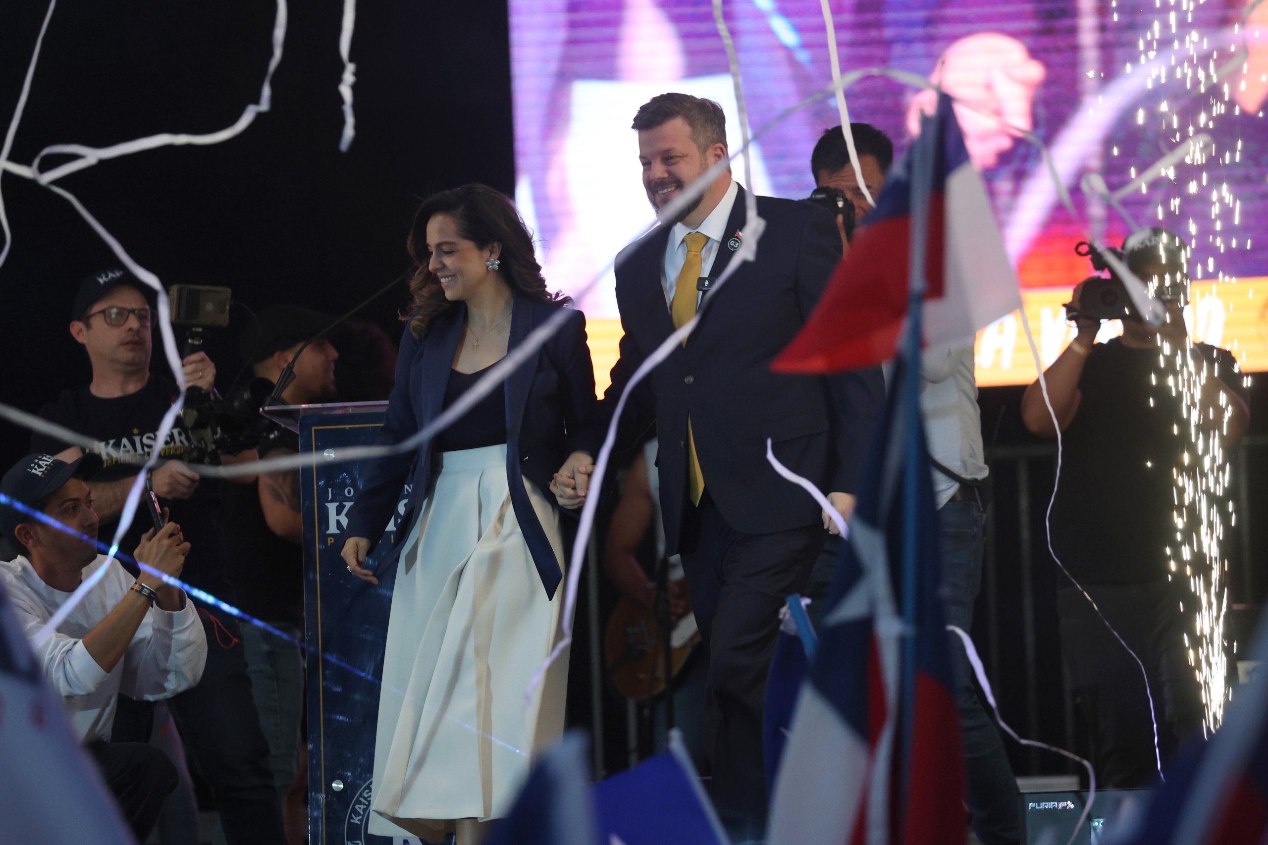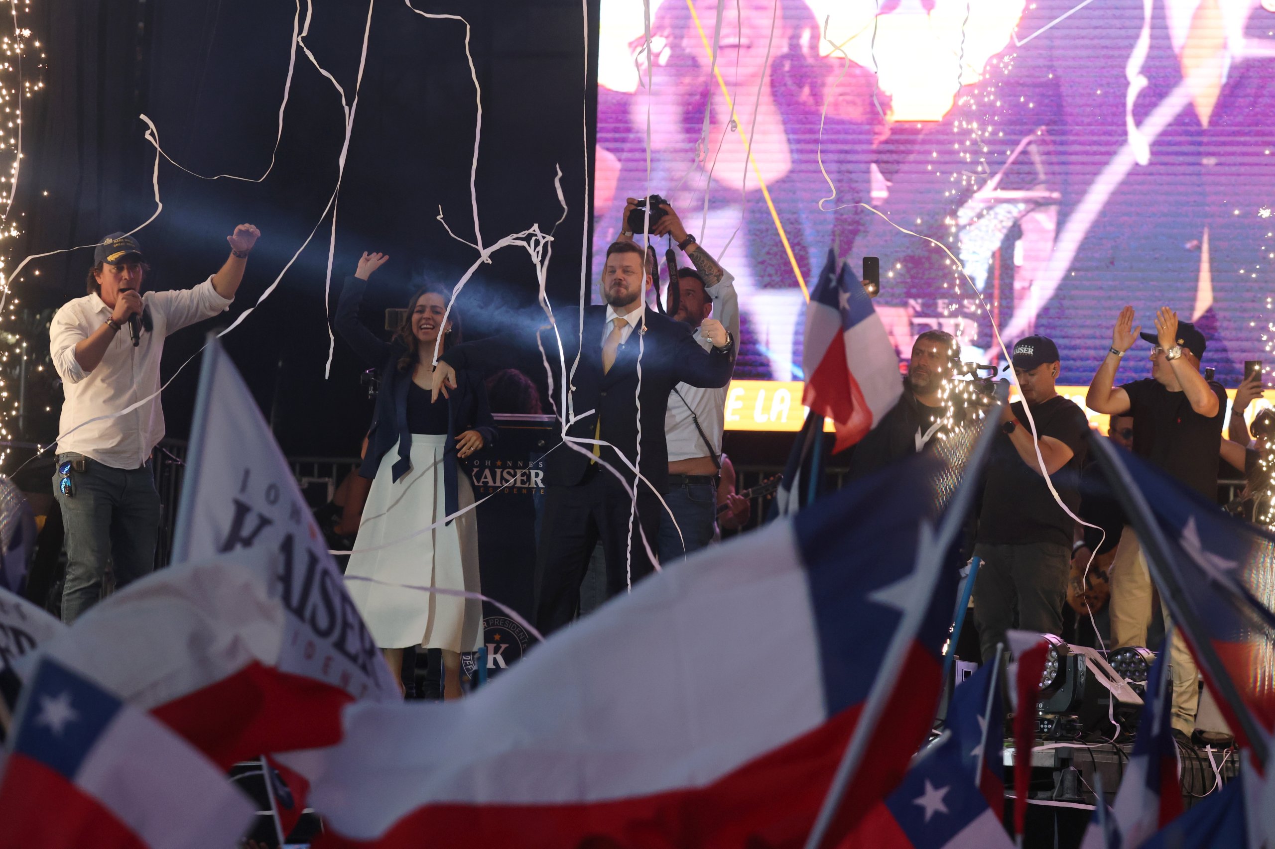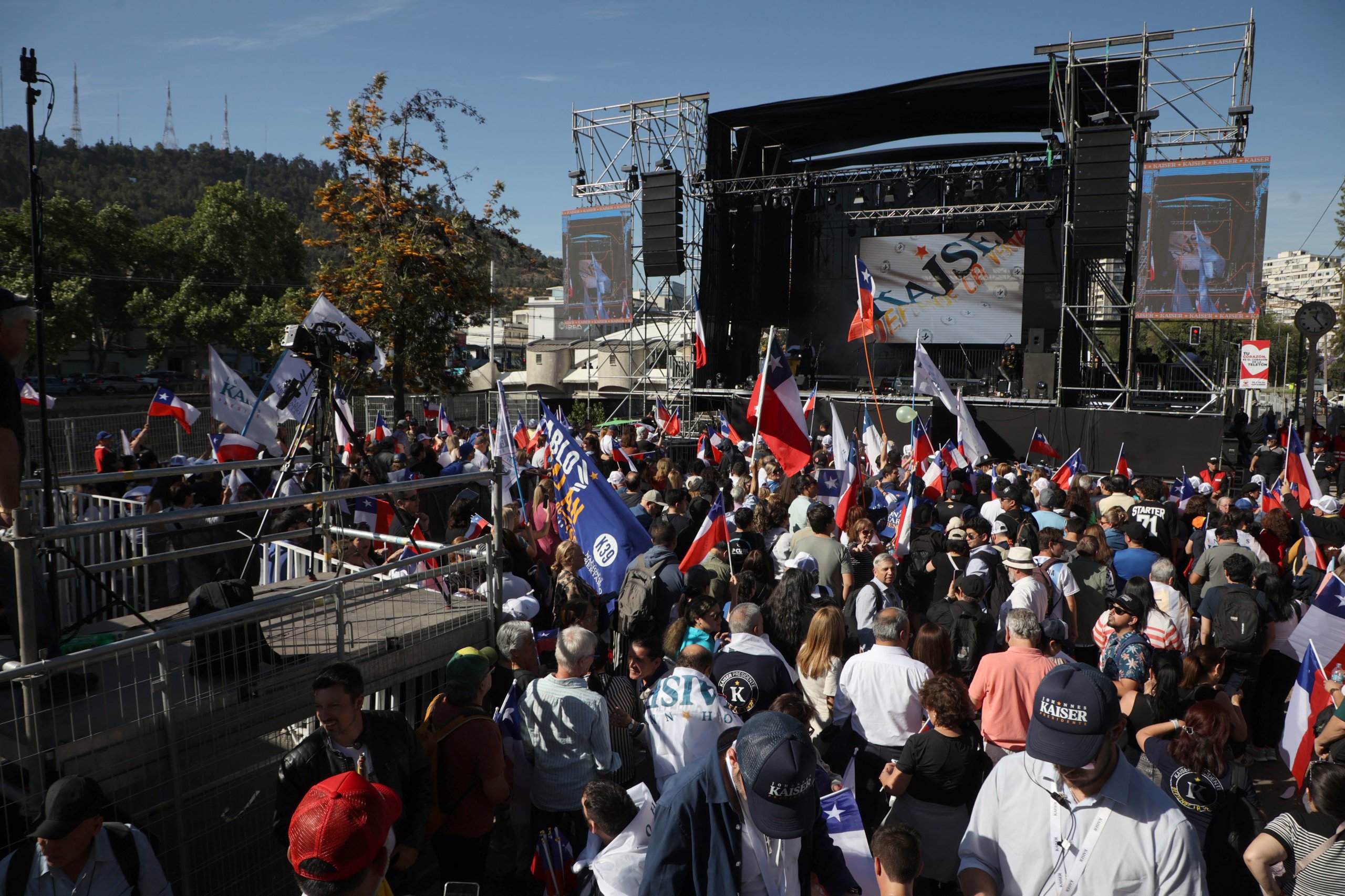 Con la entonación del himno nacional, incluyendo la polémica tercera estrofa que menciona a los “valientes soldados”, se dio inicio al acto de cierre de campaña del candidato del Partido Nacional Libertario, Johannes Kaiser, realizado en la plaza de la Aviación, en Providencia.
