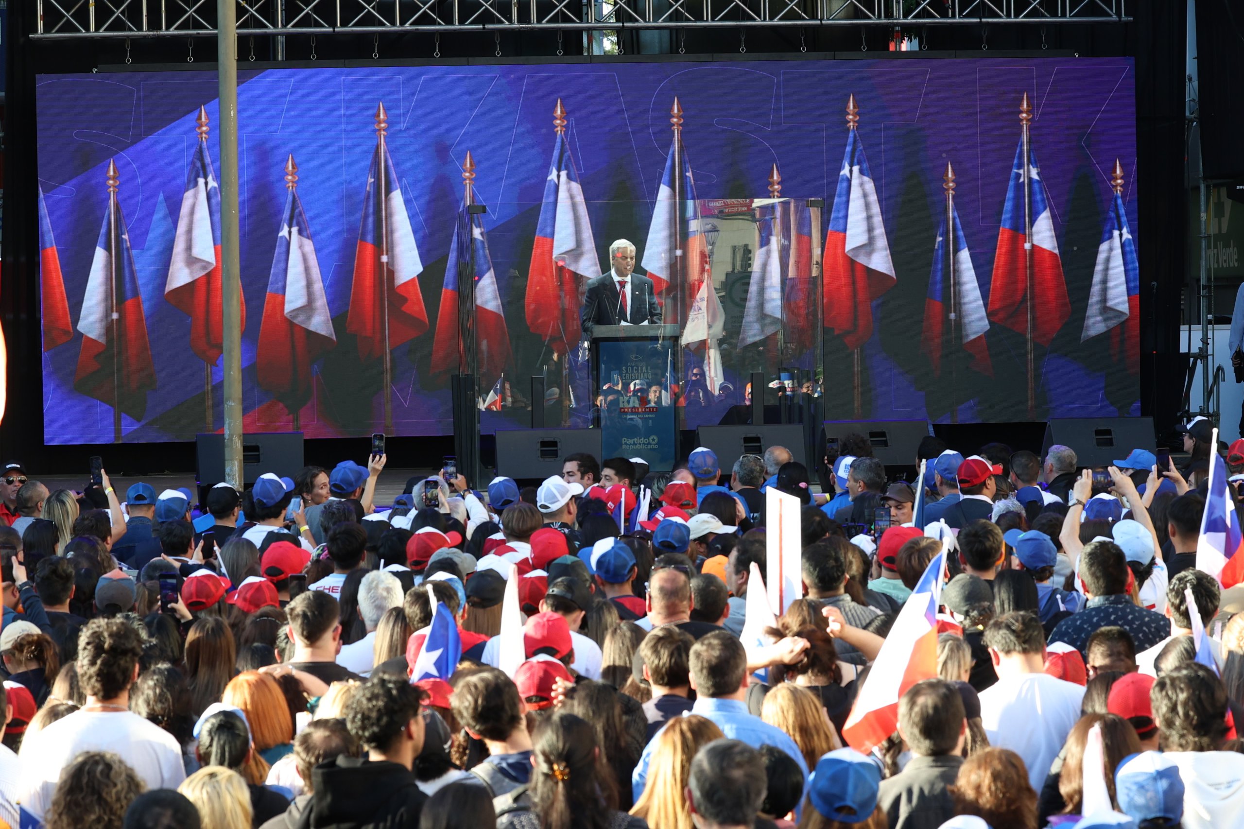 El candidato presidencial del Partido Republicano y del Partido Social Cristiano, José Antonio Kast, llevó a cabo su cierre de campaña en Concepción, región del Biobío.