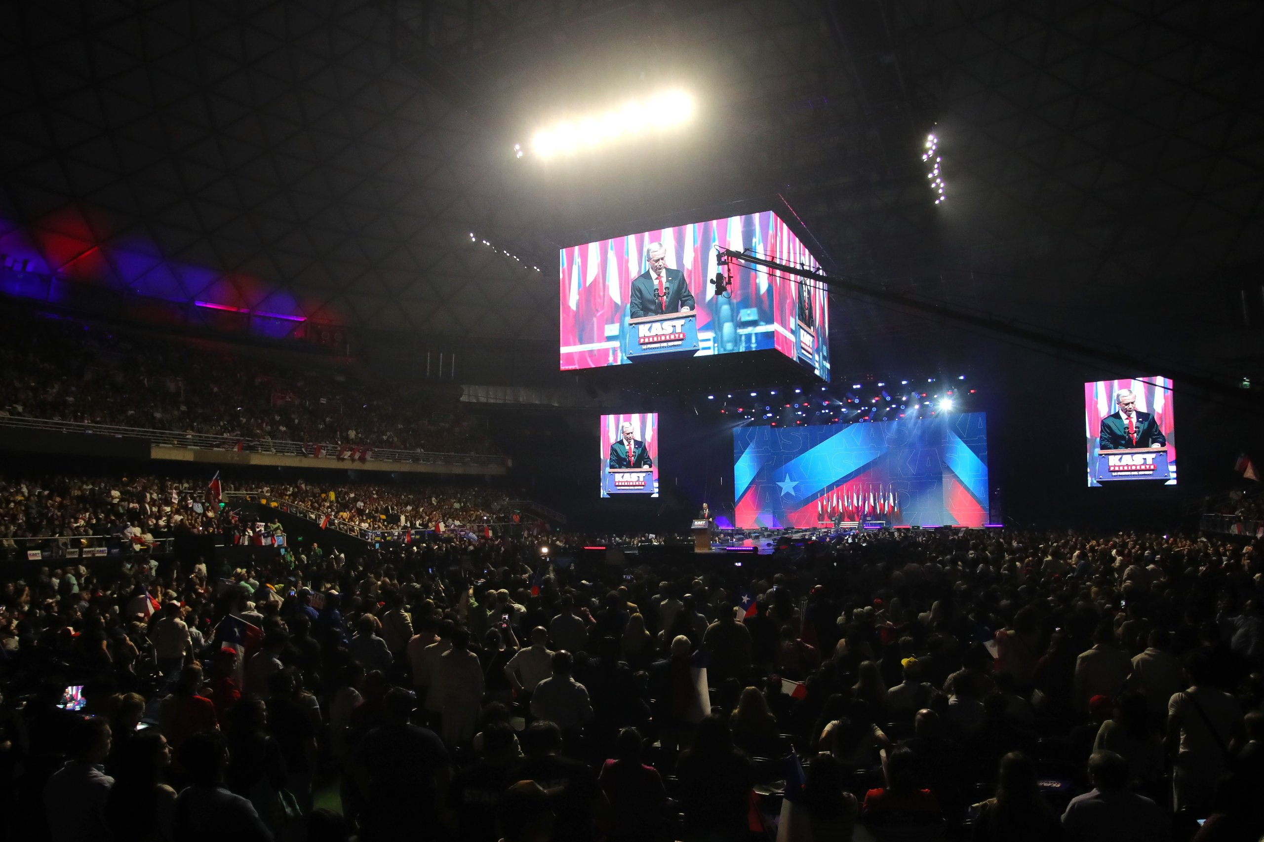 El candidato presidencial del Partido Republicano y el Partido Social Cristiano, José Antonio Kast, realizó este martes el cierre de su campaña para la región Metropolitana en el Movistar Arena.