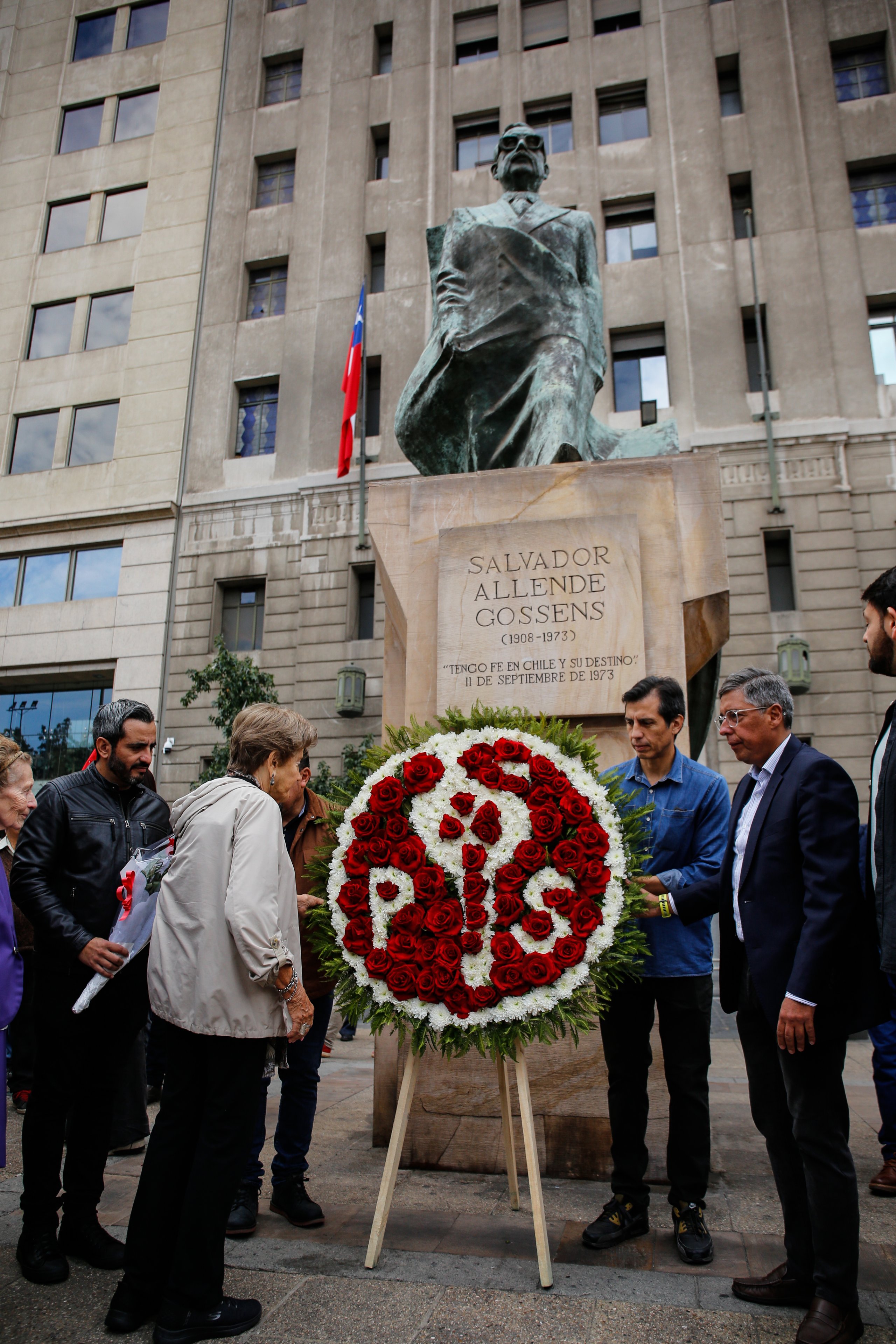 La actividad se desarrolló en la Plaza de la Constitución, frente al monumento de Salvador Allende, donde se realizó una ofrenda floral en su memoria.