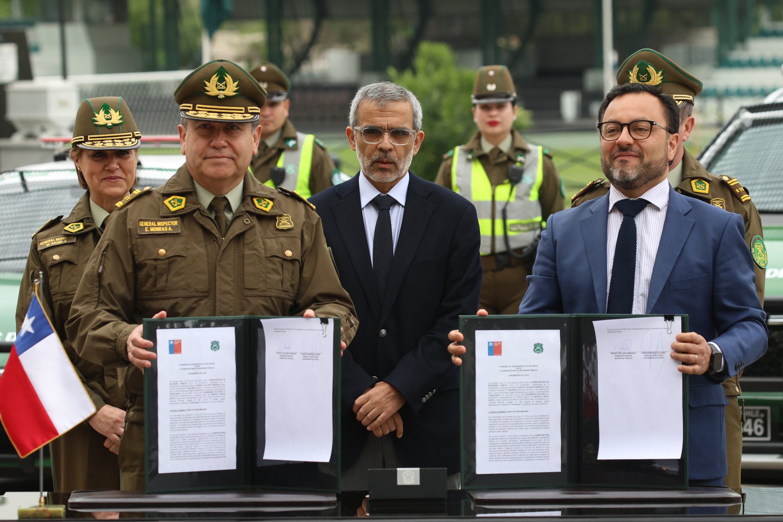 El acuerdo entre el Ministerio de Seguridad Pública y Carabineros reforzará el parque vehicular y la adquisición de tecnología de punta que permitirá a la fuerza pública fortalecer la prevención en espacios públicos, la investigación, el aumento del patrullaje y la presencia policial.