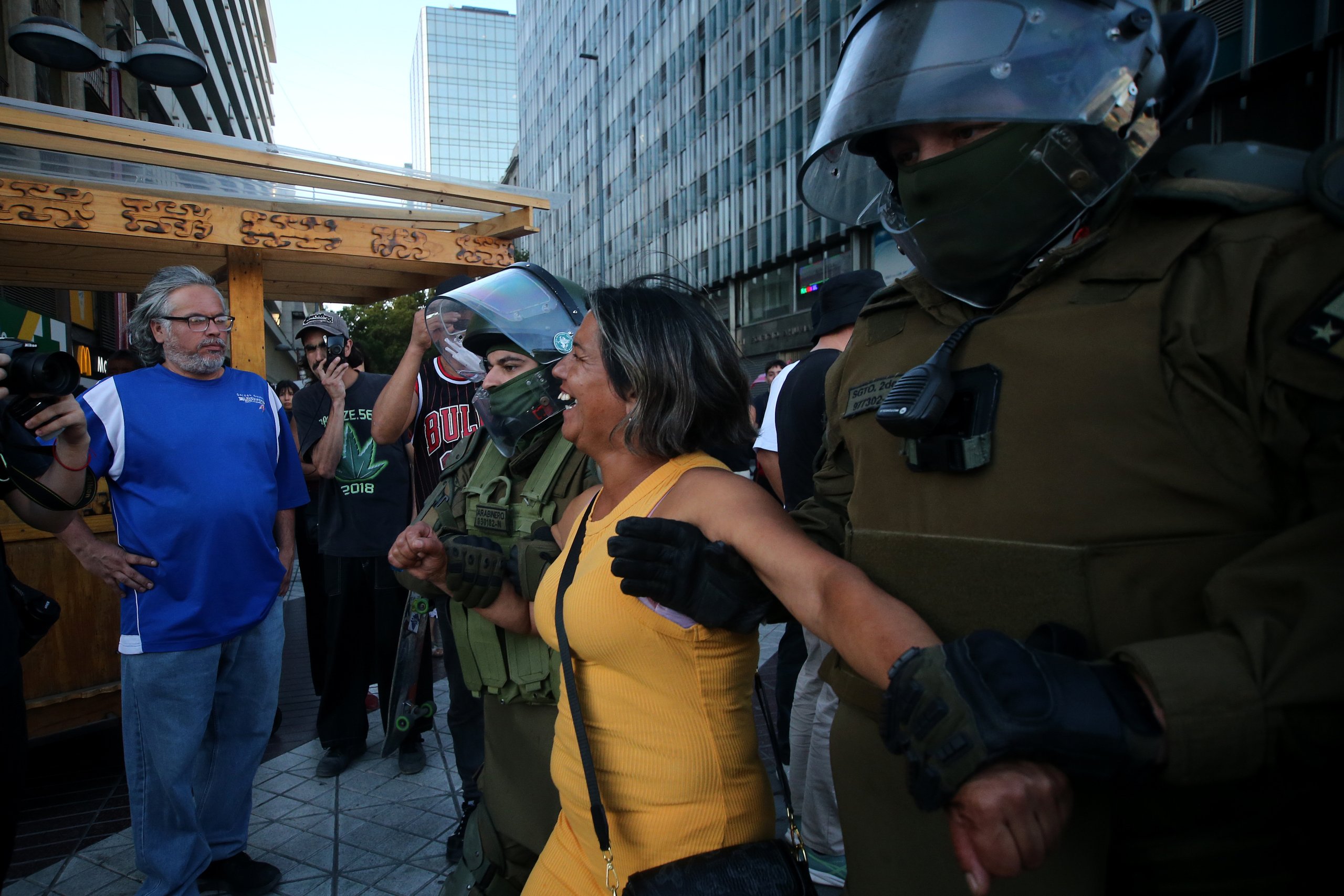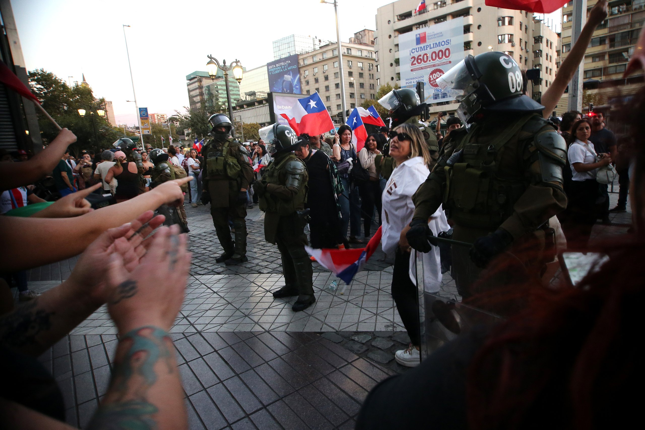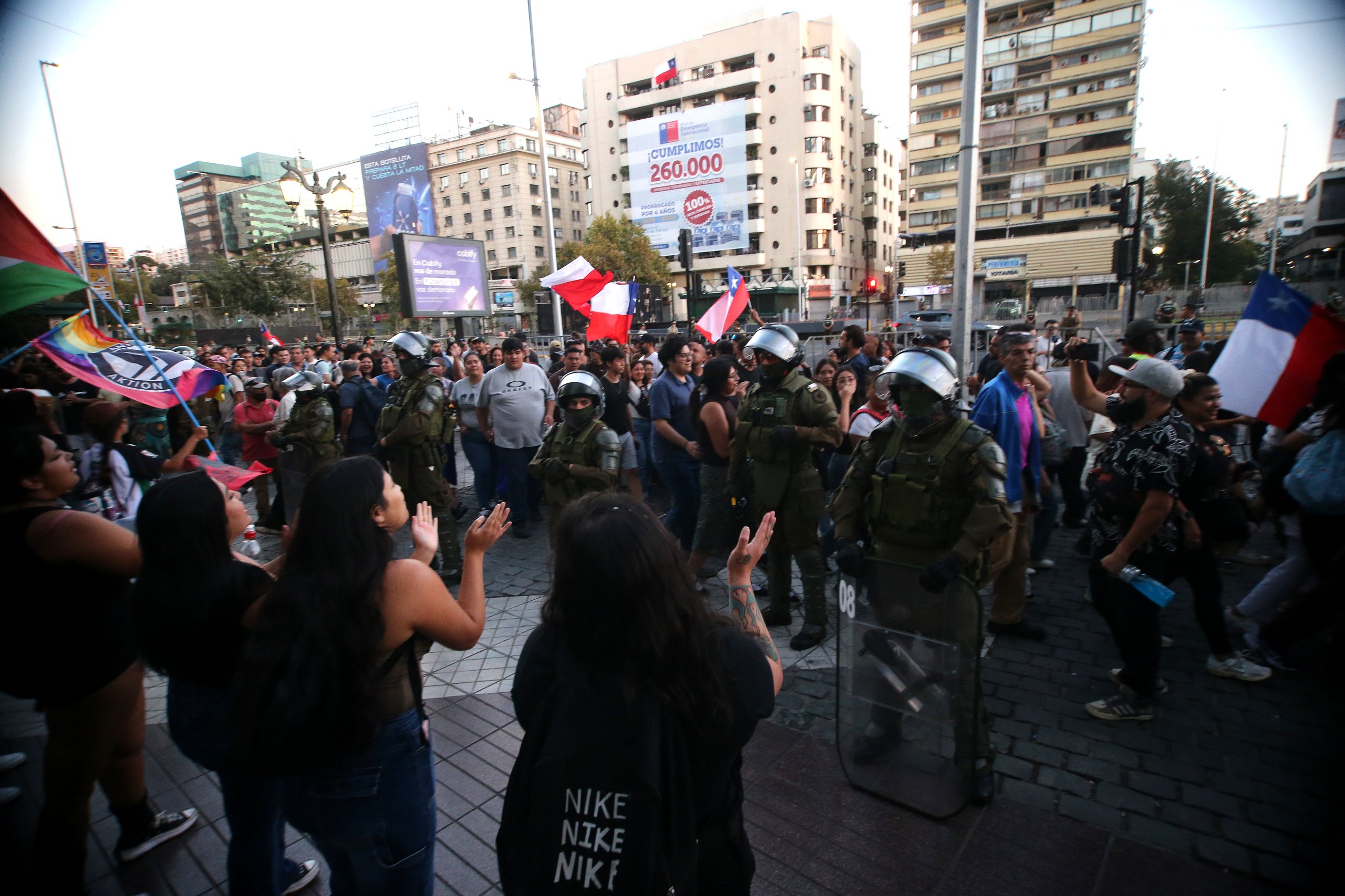 De acuerdo con Carabineros, las manifestaciones comenzaron cerca de las 19:30 horas y se concentraron en el sector de Vicuña Mackenna y Alameda, entre Ahumada y Estado.