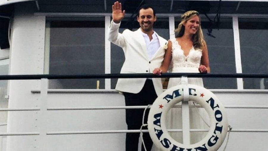 La boda se celebró a bordo de un lindo barco, el primer baile de pareja fue improvisado ya que no habían planificado nada para este momento. Como buena boda de un chileno, se sirvió vino, capricho que según el novio costo mucho conseguir.