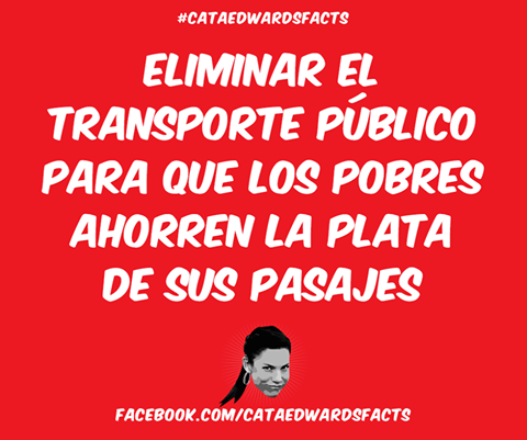Uno de los últimos movimientos cibernéticos en contra de la periodista es una página de Facebook (ver aquí) llamada Cata Edwards Facts, aquí los mejores memes de este formato.