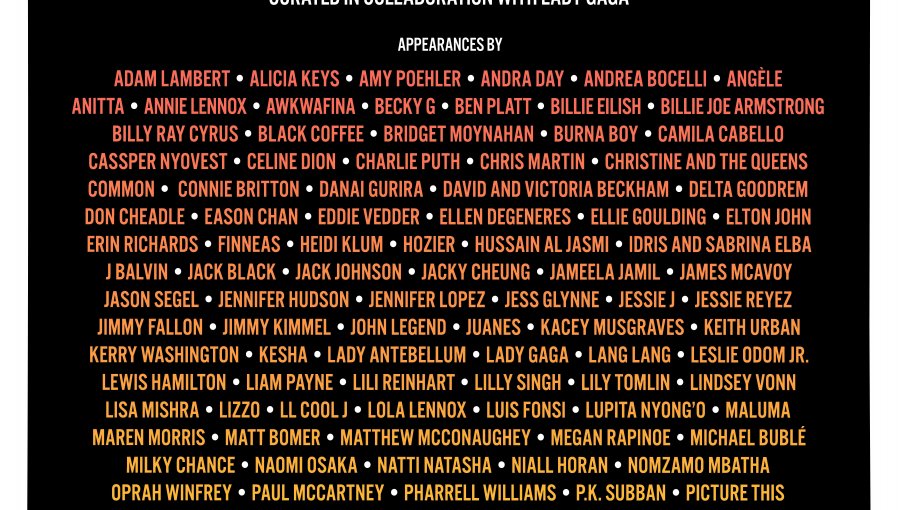 Anteriormente se había confirmado la presencia de Paul McCartney, Billie Eilish, Elton John, Maluma, Stevie Wonder, Alanis Morissette, Andrea Bocelli, J Balvin, Eddie Vedder cantante de Pearl Jam, Chris Martin, vocalista de Coldplay y ahora se sumaron nombres como Alicia Keys, Awkwafina, Camila Cabello, Céline Dion, Jennifer Lopez,Pharrell Williams, Sam Smith, Shawn Mendes, Taylor Swift, Usher.