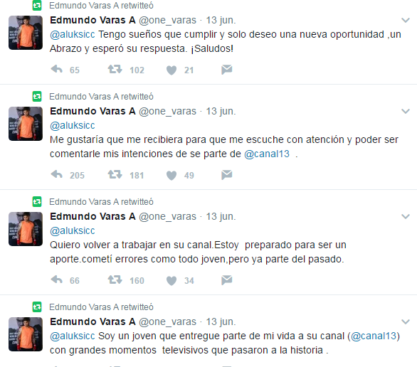 Ante la desesperación y ganas de poder formar parte de un proyecto, el "mini galán" no lo pensó dos veces y a través de Twitter le pidió trabajo al empresario Andrónico Luksic, dueño de Canal 13.