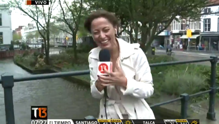 La mañana de este martes, Santa María se disponía a entregar la información desde Holanda, sin embargo inesperadamente una feroz lucha del viento con su paragua le impedía entregar la información desde La Haya.