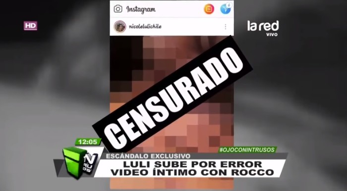 Sin embargo el programa de espectáculos "Instrusos" de La Red logró recuperar el registro, el cual fue mostrado en pantalla pero de forma pixelada. "Son pantallazos de un vídeo censurado que, al parecer, según la investigación del programa, habría sido subido por la misma Nicole Moreno a sus redes sociales", comenzó relatando el periodista Michael Roldán.