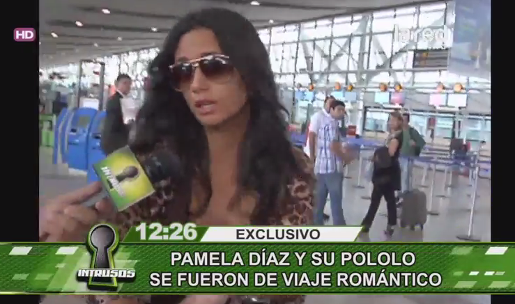 Pamela fue sorprendida por el equipo de Intrusos en el Aeropuerto Internacional. El rostro de UCV-TV viajó acompañada de Pedro Bastidas.