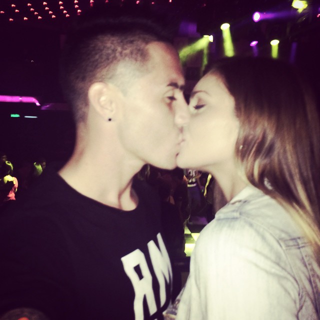 Luego de ir varias veces a ver a su nuevo amor al estadio, compartió esta fotografía en su Instagram, besándose con el jugador.