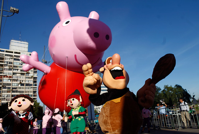 Esta mañana por las calles de Santiago, específicamente en las cercanías de la Plaza Italia, se realizó un adelanto del "Paris Parade 2014", que se llevará a cabo este domingo y donde desfilaron personajes Ogu, Peppa Pig y Red Bird de Angry Birds.