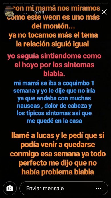 El actor que dio vida al pequeño Félix en la popular serie recibió por redes sociales el testimonio de Camila, una chica de 18 años que en su cuenta de Instagram relató una serie de hechos que la ligan a Lucas, partiendo con un mensaje que dice "no tengo palabras para expresar lo lacra que fuiste con cada una de las que estuvimos contigo".