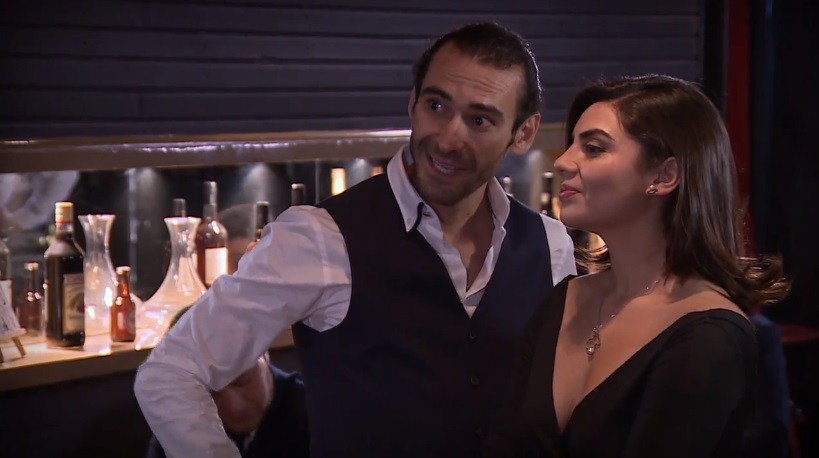 La escena se vivió en un restaurante, hasta donde llegó la periodista a comer con Alonso (Hernán Contreras), encontrándose por casualidad con su ex, quien inmediatamente le presentó a la mujer.