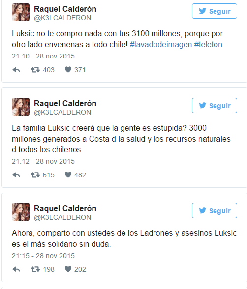 Estas fueron las opiniones en contra de los Luksic dada a conocer por la futura abogada.