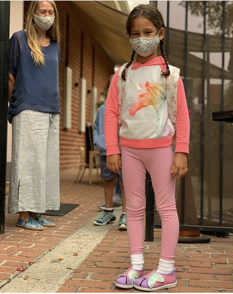 "Primer día de Kinder de la personita más importante de vida. Orgullosa es poco. También muy agradecida de los esfuerzos de sanidad y precaución tomados por nuestra escuela y el pequeño grupo de padres con quien comparto esta aventura. Vamos 2020!".