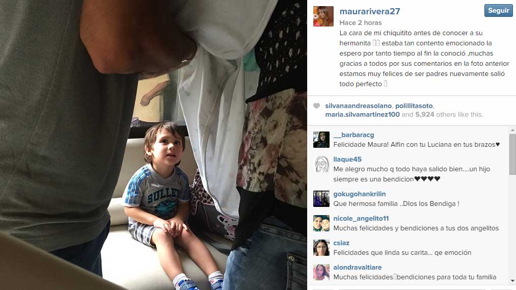 "La cara de mi chiquitito antes de conocer a su hermanita. Estaba tan contento emocionado la espero por tanto tiempo al fin la conoció. Muchas gracias a todos por sus comentarios en la foto anterior estamos muy felices de ser padres nuevamente salió todo perfecto", fue el escrito de Maura para acompañar la tierna imagen en su instagram