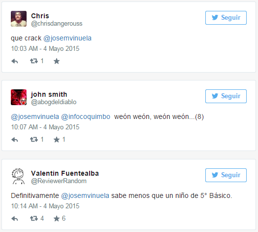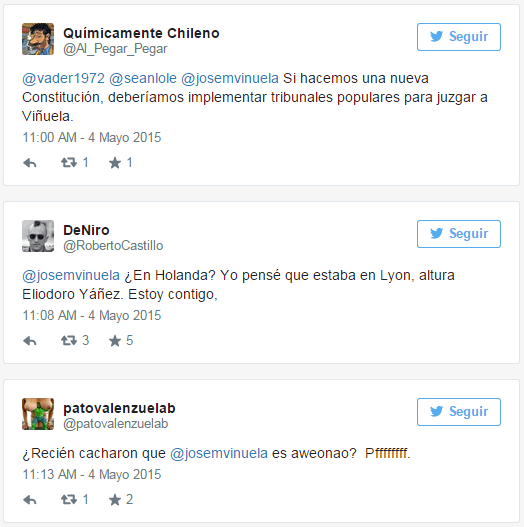 Los comentarios sin piedad contra Viñuela se masificaron por medio de esta red social, escribiéndole hasta el periodista Mauricio Bustamante que se encuentra en Holanda cubriendo los alegatos.