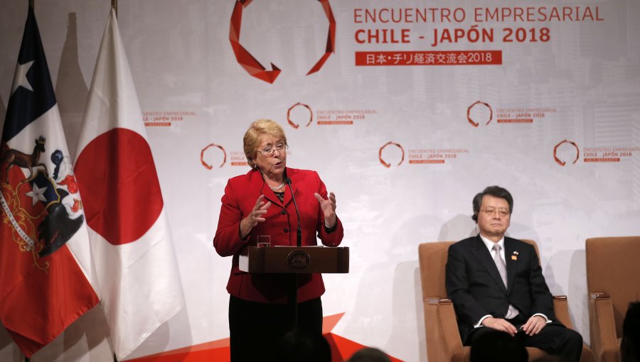 Bachelet también participó en el Encuentro Empresarial Chile-Japón 2018, asistió a un desayuno con mujeres japonesas destacadas, se reunió con Yuki Nakagawa, del New Technology Foundation, especialista en robótica, y recibió a los alumnos del programa de Robótica Educativa del Liceo Abdón Cifuentes de Conchalí, que se encuentran en Tokio.
